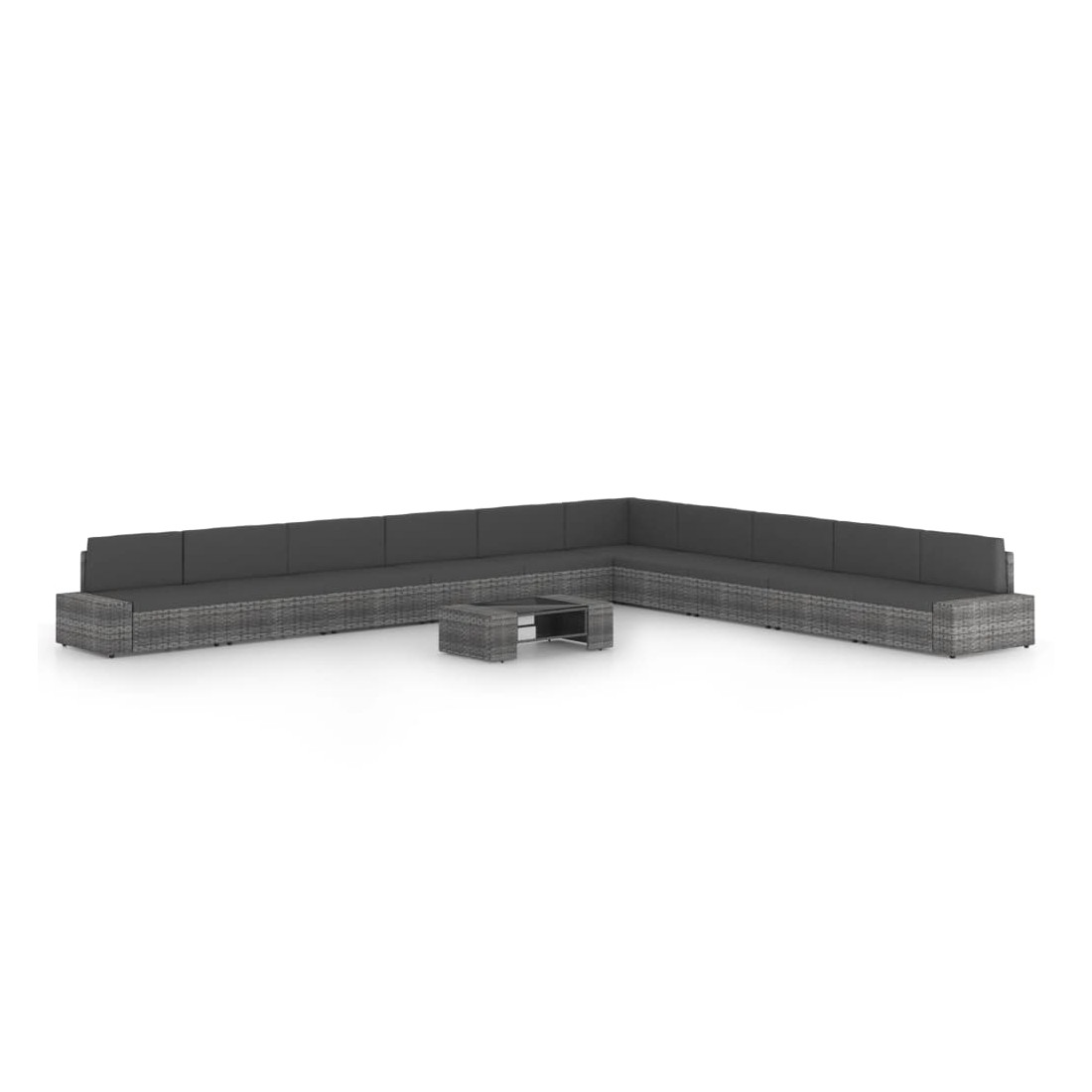Salon de jardin 11 pcs avec coussins Gris Résine tressée