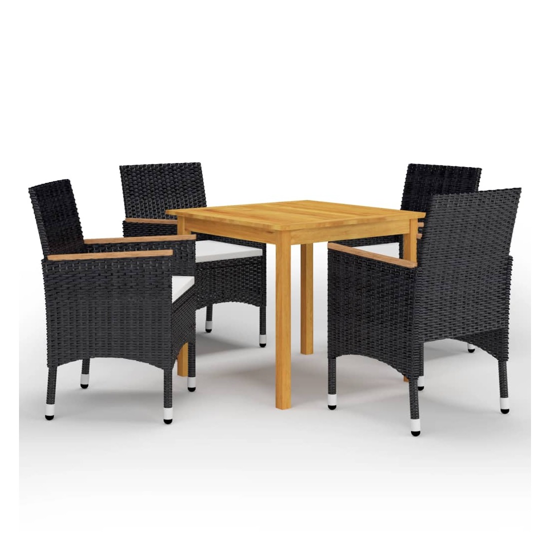 Créez une esthétique convaincante et uniforme dans votre espace extérieur avec cet ensemble de salle à manger de jardin ! La table de salle à manger est en bois d’acacia massif avec une finition à l’huile, ce qui la rend stable, durable et facile à entretenir. Dotées d’un cadre en acier enduit de poudre recouvert de résine tressée résistante aux intempéries, ces chaises sont robustes et faciles à nettoyer. La chaise d’extérieur, conçue avec dossier incurvé et accoudoir, présente une forme plus ergonomique pour un confort maximal. Les accoudoirs sont joliment décorés de bois d'acacia massif avec une finition à l'huile naturelle, ce qui apporte une sensation de charme rustique. De plus, les coussins bien rembourrés offrent un confort suprême pendant votre temps assis. Remarque importante