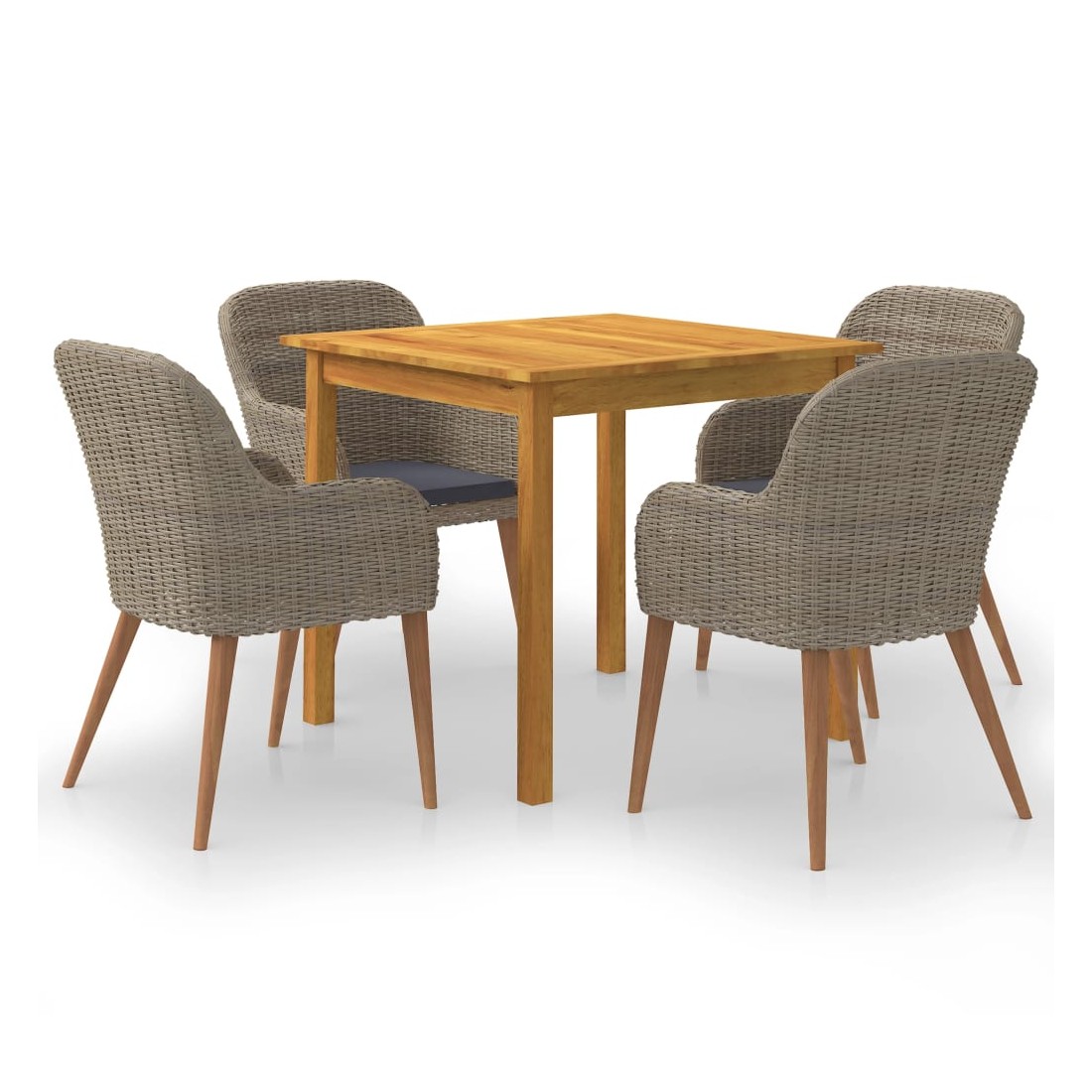 Créez une esthétique convaincante et uniforme dans votre espace extérieur avec cet ensemble de salle à manger de jardin ! La table de salle à manger est fabriquée en bois d’acacia massif avec une finition à l’huile, ce qui la rend stable, durable et facile à entretenir. Dotées d’un cadre en acier enduit de poudre recouvert de résine tressée résistante aux intempéries, ces chaises de salle à manger sont robustes et faciles à nettoyer. La forme ergonomique et les coussins bien rembourrés offriront le confort d’assise suprême. Les housses de coussin en polyester à faible entretien peuvent être facilement retirées et lavées. Remarque importante : Nous vous recommandons de couvrir l'ensemble de salle à manger pendant la pluie, la neige et le gel pour une utilisation durable.