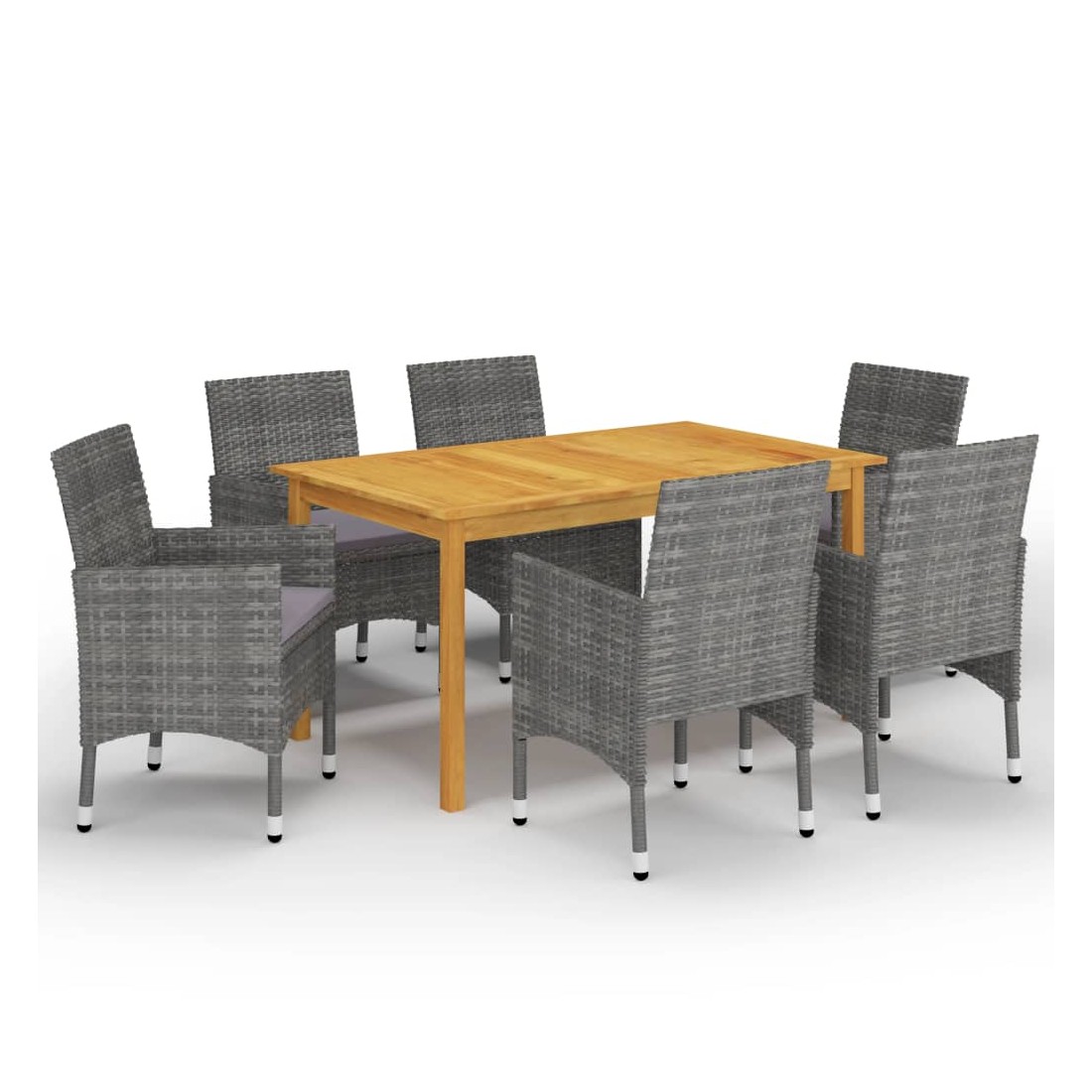 Créez une esthétique convaincante et uniforme dans votre espace extérieur avec cet ensemble de salle à manger de jardin ! La table de salle à manger est en bois d’acacia massif avec une finition à l’huile, ce qui la rend stable, durable et facile à entretenir. Dotées d’un cadre en acier enduit de poudre recouvert de résine tressée résistante aux intempéries, ces chaises sont robustes et faciles à nettoyer. Conçue avec un dossier et un accoudoir incurvés, la chaise à dîner a une forme plus ergonomique pour un confort maximal. Chaque siège est doté d'un coussin rembourré amovible pour ajouter du confort pendant votre temps de détente. Remarque importante : Nous vous recommandons de couvrir l'ensemble de salle à manger pendant la pluie, la neige et le gel pour une utilisation durable.