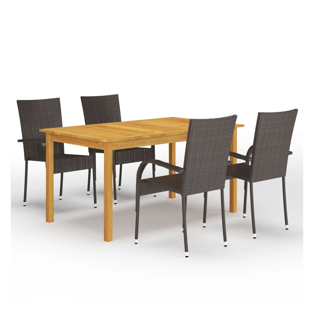 Créez une esthétique convaincante et uniforme dans votre espace extérieur avec cet ensemble de salle à manger de jardin ! La table de salle à manger est en bois d’acacia massif avec une finition à l’huile, ce qui la rend stable, durable et facile à entretenir. Dotées d’un cadre en acier enduit de poudre recouvert de résine tressée résistante aux intempéries, ces chaises sont robustes et faciles à nettoyer. Les chaises d’extérieur sont légères et peuvent être empilées pour gagner de la place lorsqu'elles ne sont pas utilisées. Remarque importante : Nous vous recommandons de couvrir l'ensemble de salle à manger pendant la pluie, la neige et le gel pour une utilisation durable.