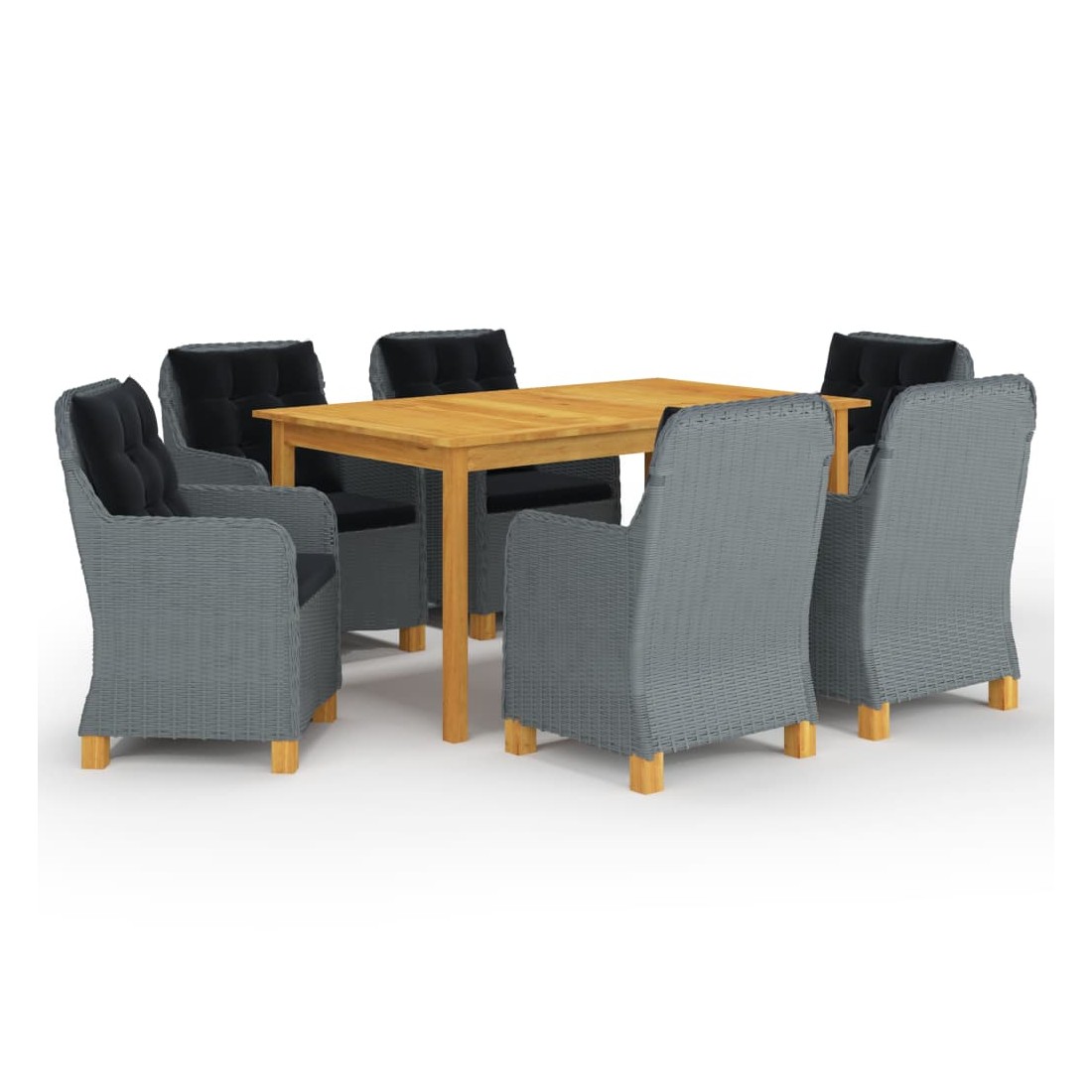 Créez une esthétique convaincante et uniforme dans votre espace extérieur avec cet ensemble de salle à manger de jardin ! La table de salle à manger est fabriquée en bois d’acacia massif avec une finition à l’huile, ce qui la rend stable, durable et facile à entretenir. La chaise d’extérieur, dotée d’un cadre en acier enduit de poudre recouvert de résine tressée ronde, est robuste et facile à nettoyer. Les coussins bien rembourrés ajoutent un confort supplémentaire lors de votre temps de détente. La housse de coussin est équipée d’une fermeture éclair, amovible et lavable. De plus, les pieds en bois d’acacia massif ajoutent à sa robustesse et sa stabilité. Ces chaises de jardin sont faciles à déplacer grâce à leur construction légère. Remarque importante : Nous vous recommandons de couvrir l'ensemble de salle à manger pendant la pluie, la neige et le gel pour une utilisation durable.