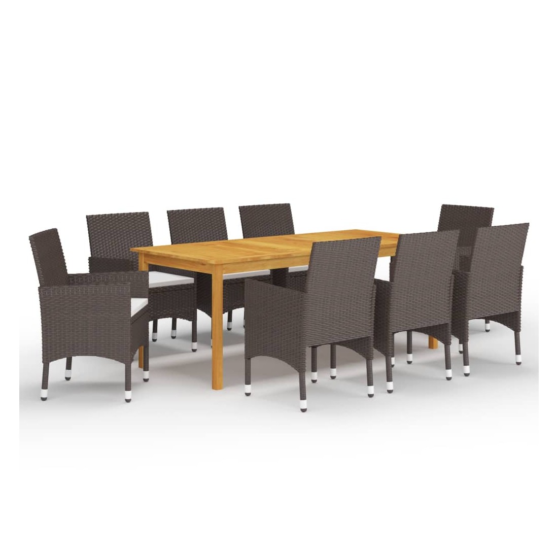 Créez une esthétique convaincante et uniforme dans votre espace extérieur avec cet ensemble de salle à manger de jardin ! La table de salle à manger est en bois d’acacia massif avec une finition à l’huile, ce qui la rend stable, durable et facile à entretenir. Dotées d’un cadre en acier enduit de poudre recouvert de résine tressée résistante aux intempéries, ces chaises sont robustes et faciles à nettoyer. Conçue avec un dossier et un accoudoir incurvés, la chaise à dîner a une forme plus ergonomique pour un confort maximal. Chaque siège est doté d'un coussin rembourré amovible pour ajouter du confort pendant votre temps de détente. Remarque importante : Nous vous recommandons de couvrir l'ensemble de salle à manger pendant la pluie, la neige et le gel pour une utilisation durable.
