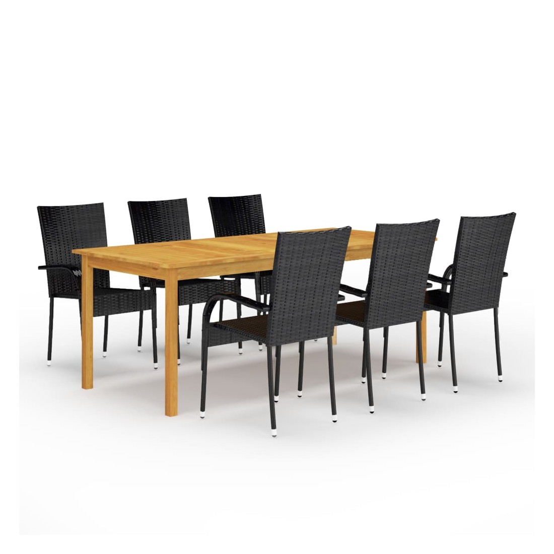 Créez une esthétique convaincante et uniforme dans votre espace extérieur avec cet ensemble de salle à manger de jardin ! La table de salle à manger est en bois d’acacia massif avec une finition à l’huile, ce qui la rend stable, durable et facile à entretenir. Dotées d’un cadre en acier enduit de poudre recouvert de résine tressée résistante aux intempéries, ces chaises sont robustes et faciles à nettoyer. Les chaises d’extérieur sont légères et peuvent être empilées pour gagner de la place lorsqu'elles ne sont pas utilisées. Remarque importante : Nous vous recommandons de couvrir l'ensemble de salle à manger pendant la pluie, la neige et le gel pour une utilisation durable.