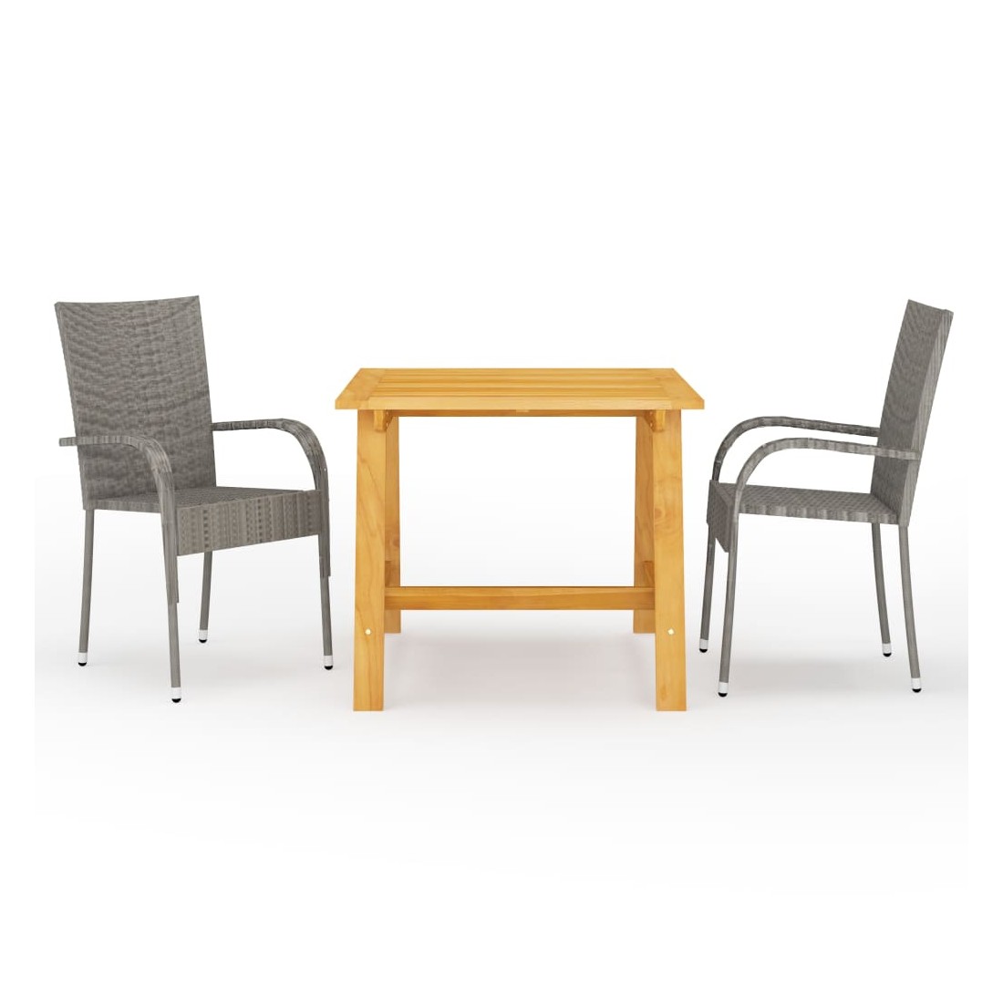 Créez une esthétique convaincante et uniforme dans votre espace extérieur avec cet ensemble de salle à manger de jardin ! La table de salle à manger est en bois d’acacia massif avec une finition à l’huile, ce qui la rend stable, durable et facile à entretenir. Dotées d’un cadre en acier enduit de poudre recouvert de résine tressée résistante aux intempéries, ces chaises sont robustes et faciles à nettoyer. Les chaises d’extérieur sont légères et peuvent être empilées pour gagner de la place lorsqu'elles ne sont pas utilisées. Remarque importante : Nous vous recommandons de couvrir l'ensemble de salle à manger pendant la pluie, la neige et le gel pour une utilisation durable.