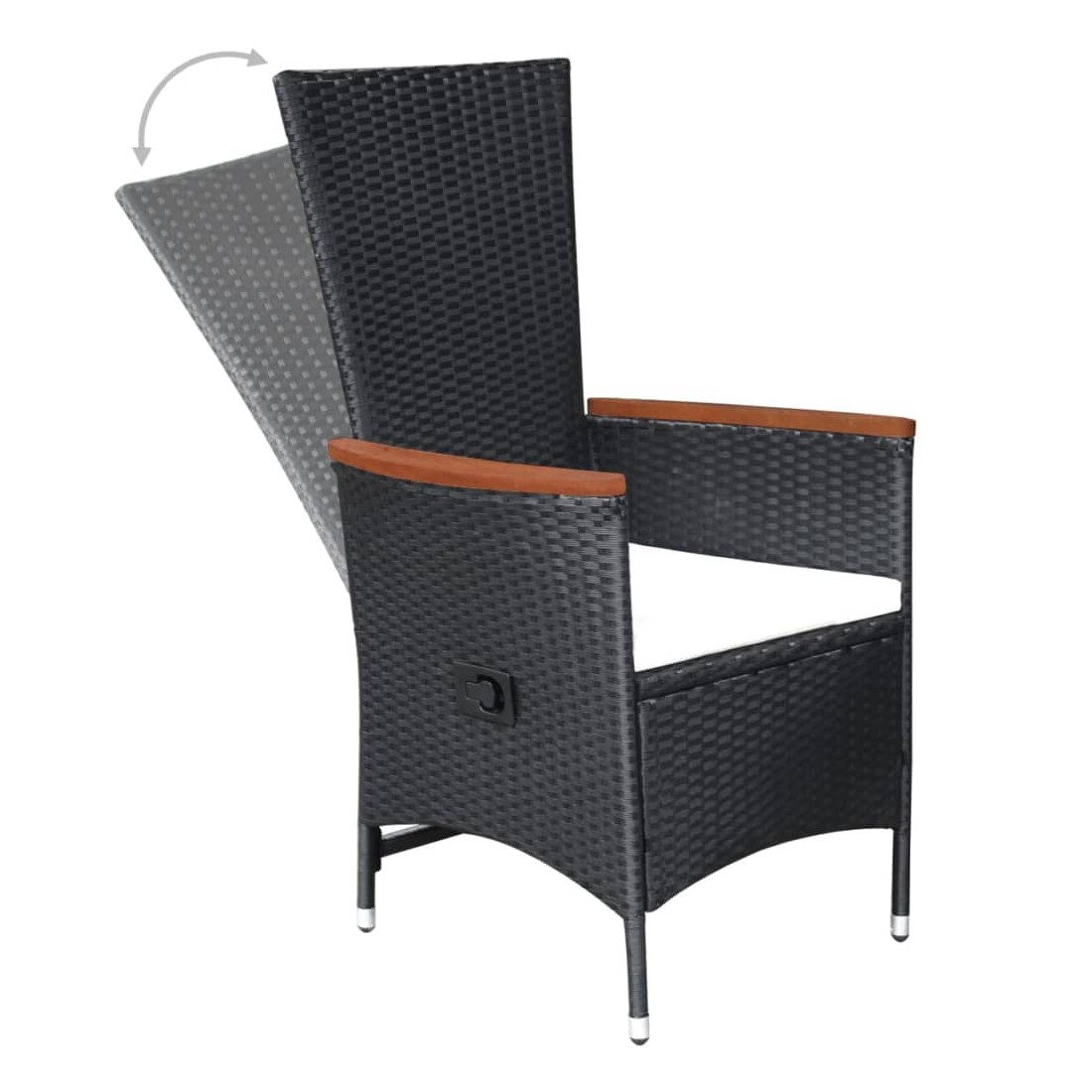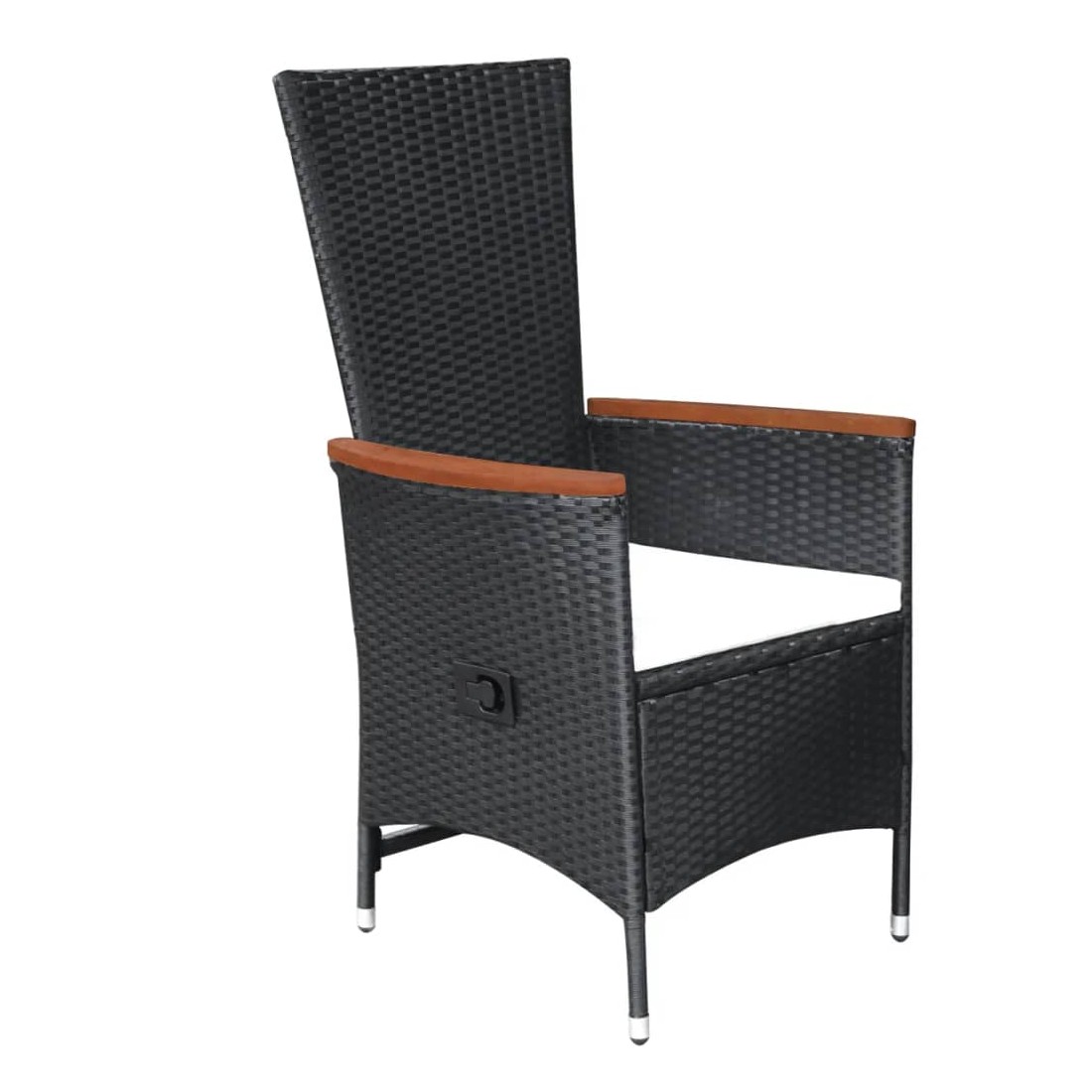 Créez une esthétique convaincante et uniforme dans votre espace extérieur avec cet ensemble de salle à manger de jardin ! La table de salle à manger est fabriquée en bois d’acacia massif avec une finition à l’huile, ce qui la rend stable, durable et facile à entretenir. Dotées d’un cadre en acier enduit de poudre recouvert de résine tressée résistante aux intempéries, ces chaises de salle à manger sont robustes et faciles à nettoyer. Les chaises inclinables vous offrent tout le confort nécessaire. Le dossier s’inclinera en tirant sur le bouton situé au côté. Grâce à leur construction légère, elles sont faciles à déplacer. Elles sont également livrées avec des coussins d'assise hautement confortables et bien rembourrés pour un confort suprême. Les housses en polyester nécessitant peu d'