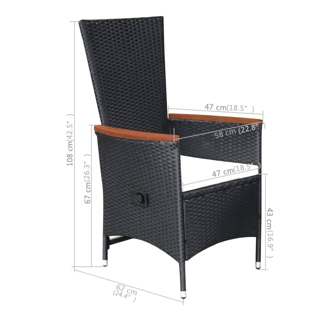 • Dimensions de la chaise (lorsqu'elle n'est pas inclinée) : 58 x 62 x 108 cm (l x P x H)