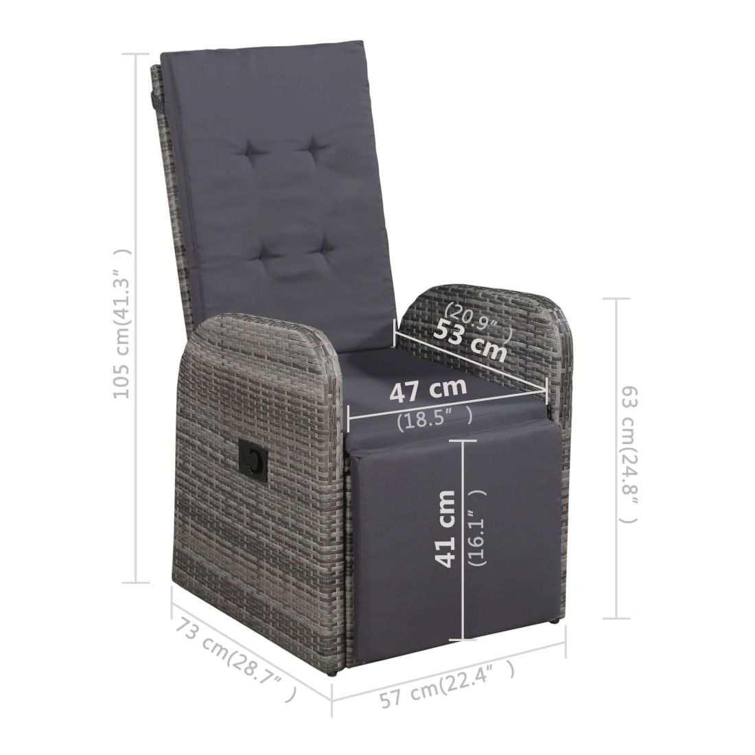 • Dimensions (non incliné) : 57 x 73 x 105 cm (l x P x H)