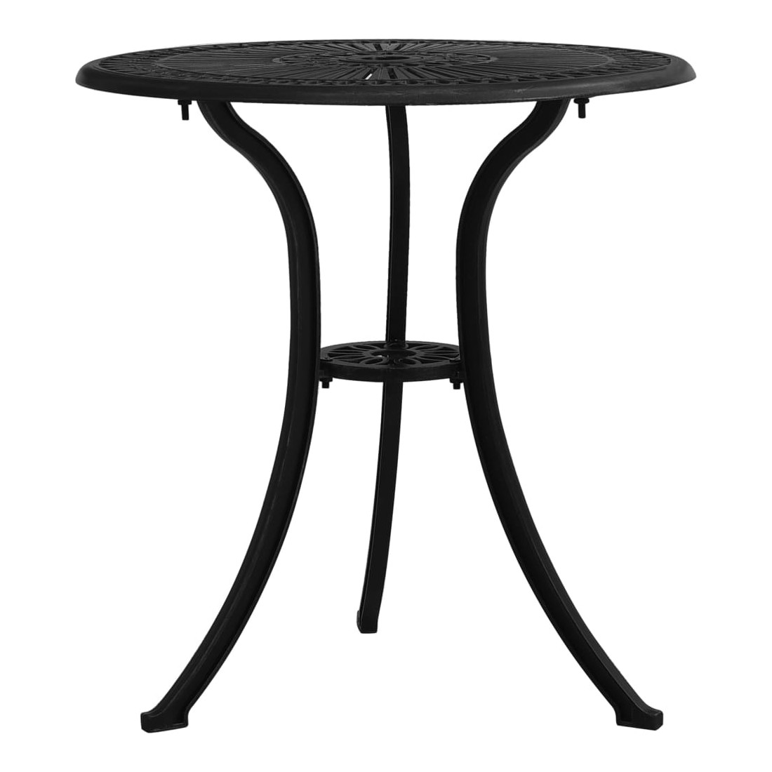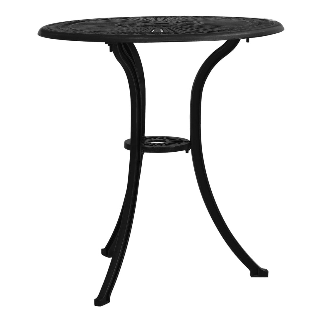 Cet ensemble de bistro, fabriqué en aluminium coulé, offre une expérience d'assise confortable pour vous et vos invités. Matériau durable : les chaises et la table d’extérieur, en aluminium coulé, sont robustes et durables. Le matériau résistant à la rouille et aux intempéries rend le mobilier idéal pour une utilisation à l'extérieur. Design élégant : les magnifiques motifs font de l'ensemble de bistro un supplément élégant à votre espace extérieur. Trou de parasol : la table basse dispose d’un trou de parasol qui peut parfaitement accueillir votre parasol pour vous protéger du soleil ou de la pluie. Bon à savoir : Pour que vos meubles d'extérieur restent beaux, nous vous recommandons de les protéger avec une housse imperméable.