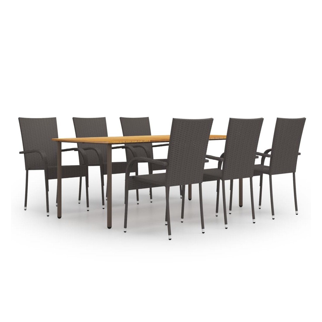 Créez une esthétique convaincante et uniforme dans votre espace extérieur avec cet ensemble de salle à manger de jardin ! La table de salle à manger est fabriquée en bois d’acacia massif et en acier durable, ce qui la rend robuste et stable. La surface à finition à l'huile la rend également adaptée pour une utilisation en extérieur. Dotées d’un cadre en acier recouvert de résine tressée résistante aux intempéries, les chaises sont robustes et faciles à nettoyer. Ces chaises de jardin peuvent être empilées pour économiser de l’espace lorsqu'elles ne sont pas utilisées. Remarque : afin de prolonger la durée de vie des meubles d'extérieur, nous vous recommandons de les protéger avec une housse imperméable.