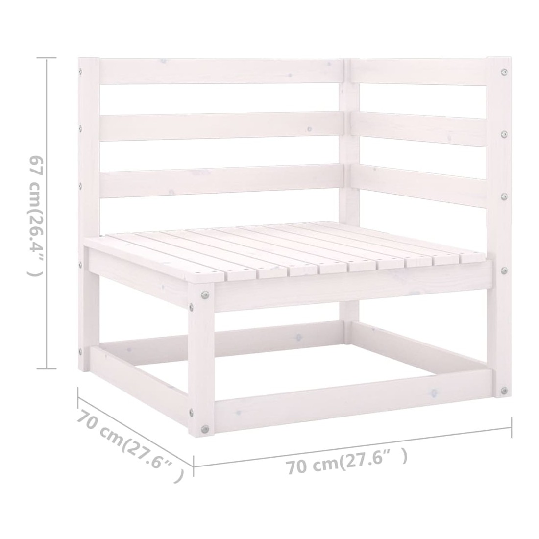- Dimensions du canapé central/d'angle (chaque) : 70 x 70 x 67 cm (l x P x H)