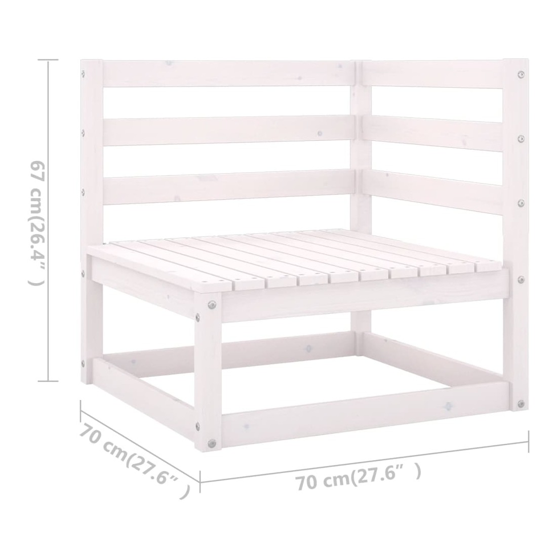 - Dimensions du canapé d'angle (chacun) : 70 x 70 x 67 cm (l x P x H)