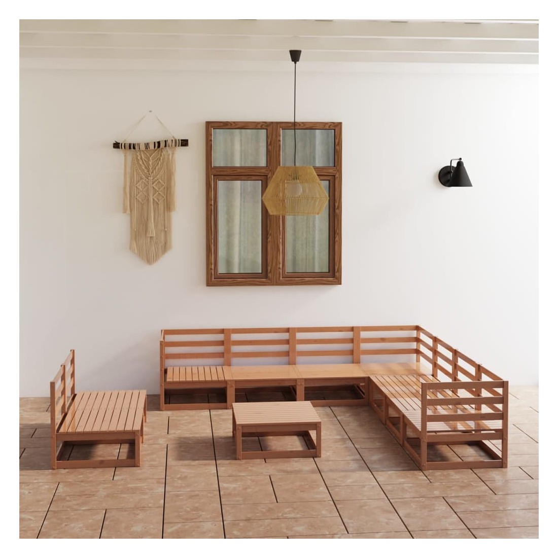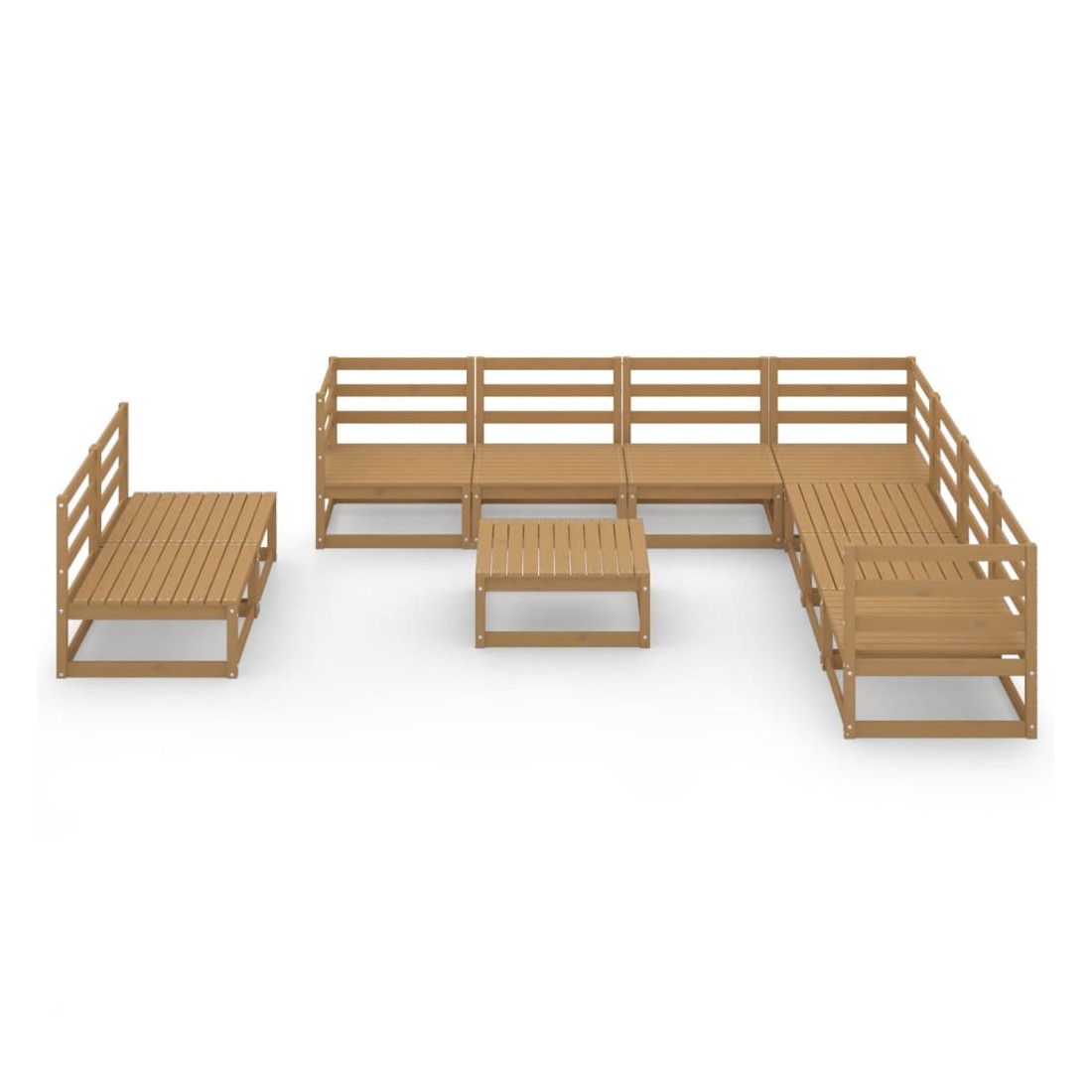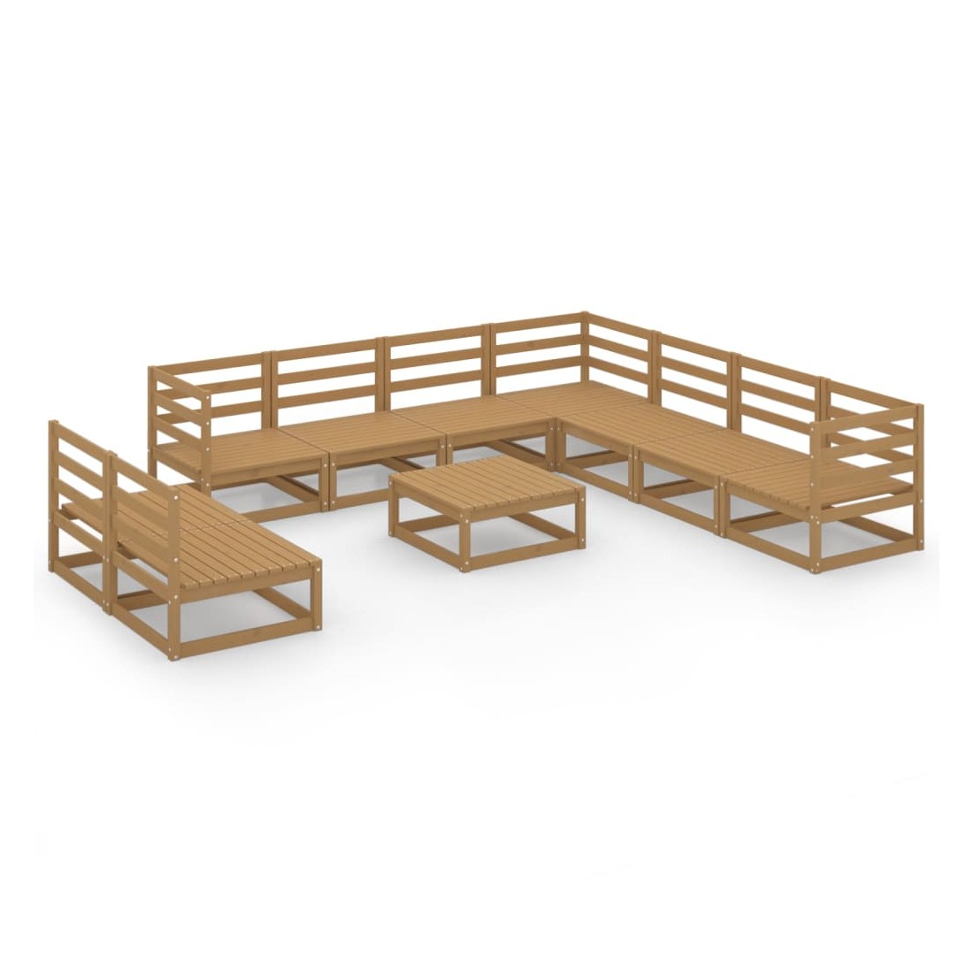 Salon de jardin 10 pcs marron miel bois de pin massif