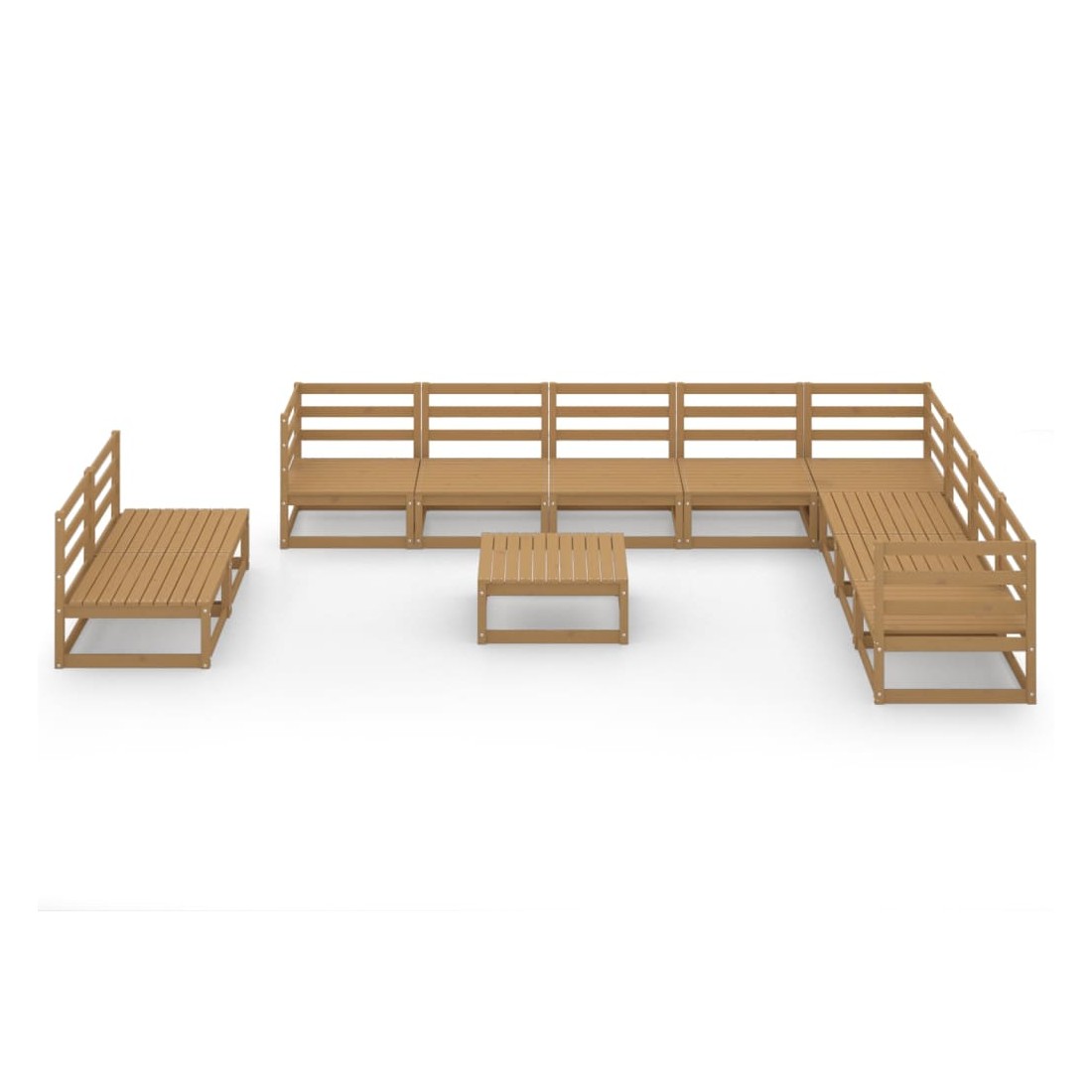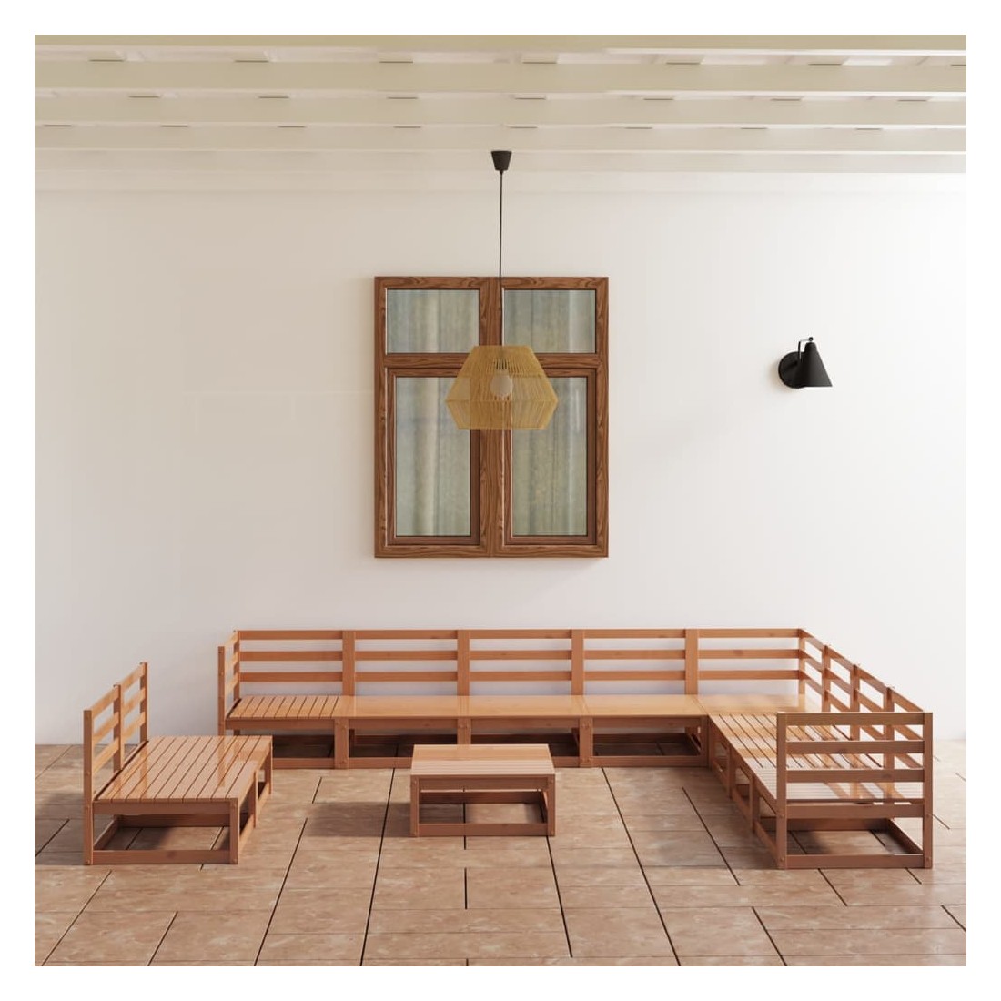 Salon de jardin 11 pcs marron miel bois de pin massif
