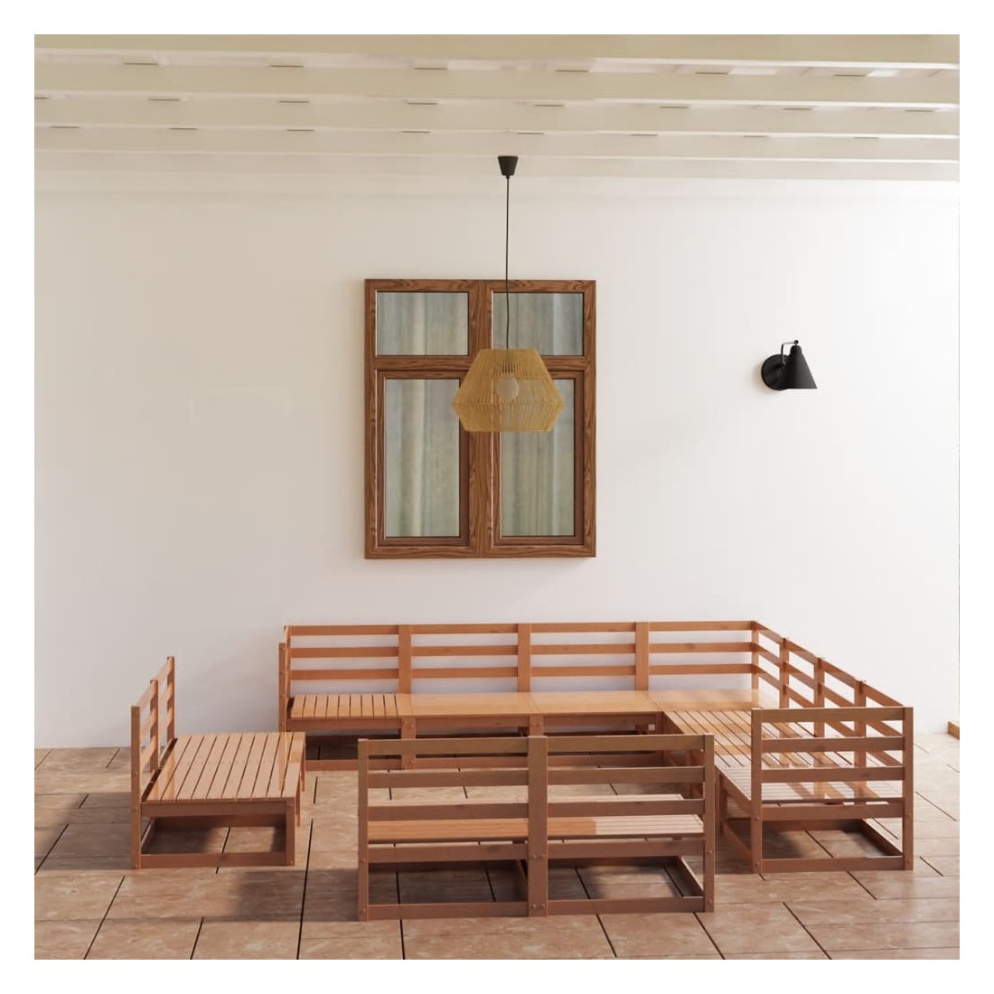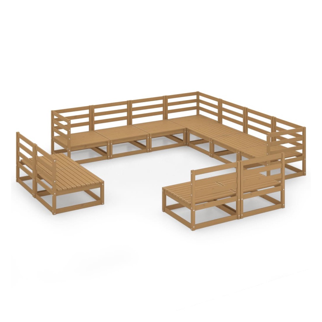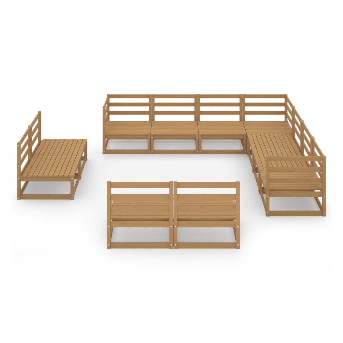 Salon de jardin 11 pcs marron miel bois de pin massif