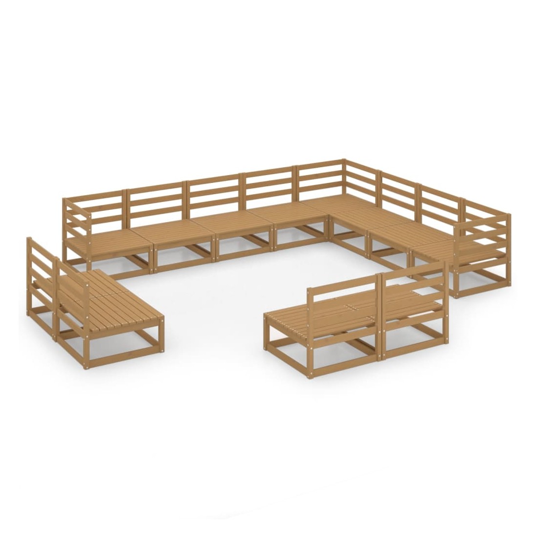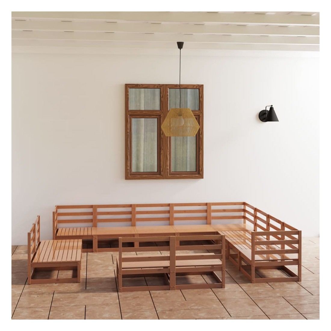 Salon de jardin 12 pcs marron miel bois de pin massif