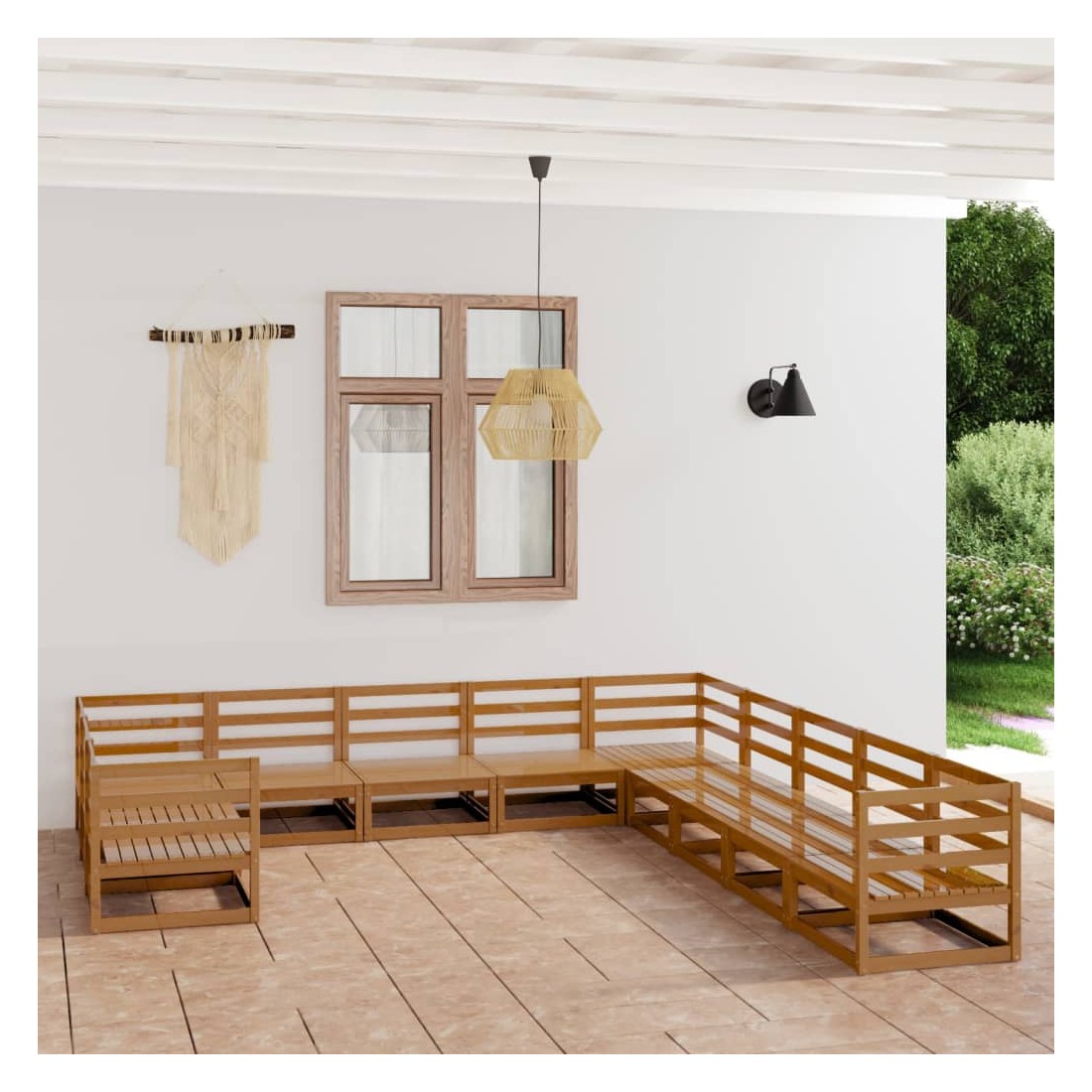 Ce salon de jardin est un excellent choix pour vous détendre et profiter du beau temps, faire une sieste ou discuter avec votre famille ou vos amis. Le salon de jardin est fait de bois de pin massif, ce qui le rend robuste et stable. Vous pouvez le combiner avec d'autres segments modulaires pour créer votre propre ensemble de salon de jardin ! Remarque : afin de prolonger la durée de vie des meubles d'extérieur, nous vous recommandons de les protéger avec une housse imperméable.