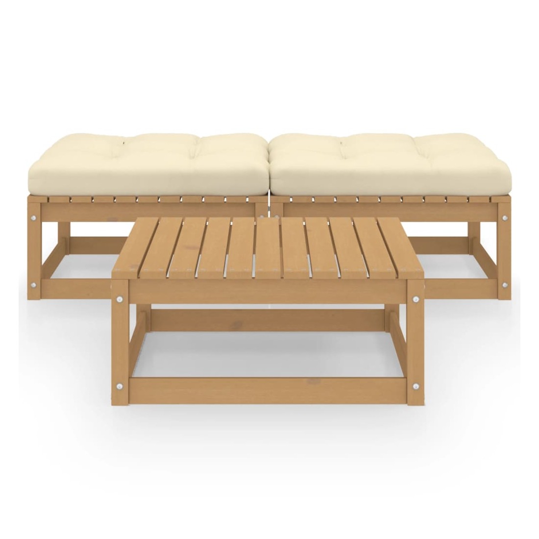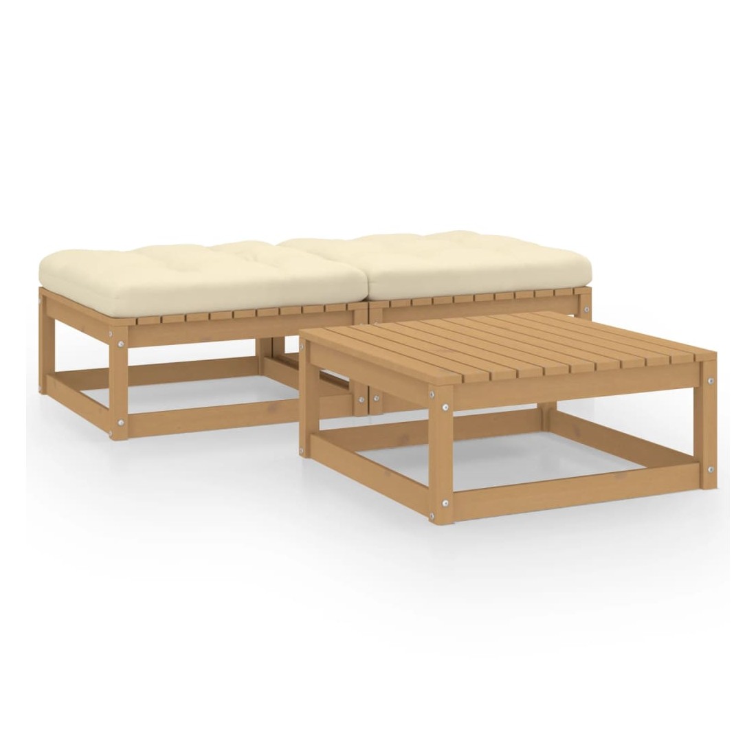 Ce salon de jardin est un excellent choix pour vous détendre et profiter du beau temps, faire une sieste ou discuter avec votre famille ou vos amis. L’ensemble de salon de jardin est fabriqué en bois de pin massif, ce qui le rend robuste et stable. Les coussins ajoutent un confort supplémentaire. Vous pouvez le combiner avec d’autres segments modulaires pour créer vos propres configurations de salon de jardin ! De plus, les deux repose-pieds peuvent être combinés et utilisés comme un banc. Remarque : afin de prolonger la durée de vie des meubles d'extérieur, nous vous recommandons de les protéger avec une housse imperméable.