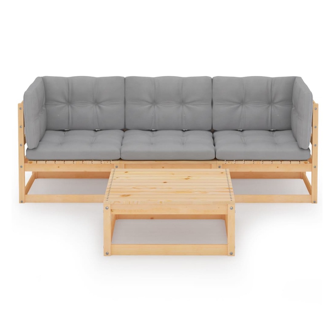 Ce salon de jardin est un excellent choix pour vous détendre et profiter du beau temps, faire une sieste ou discuter avec votre famille ou vos amis. L’ensemble de salon de jardin est fabriqué en bois de pin massif, ce qui le rend robuste et stable. Les coussins ajoutent un confort supplémentaire. Vous pouvez le combiner avec d’autres segments modulaires pour créer vos propres configurations de salon de jardin ! Remarque : afin de prolonger la durée de vie des meubles d'extérieur, nous vous recommandons de les protéger avec une housse imperméable.