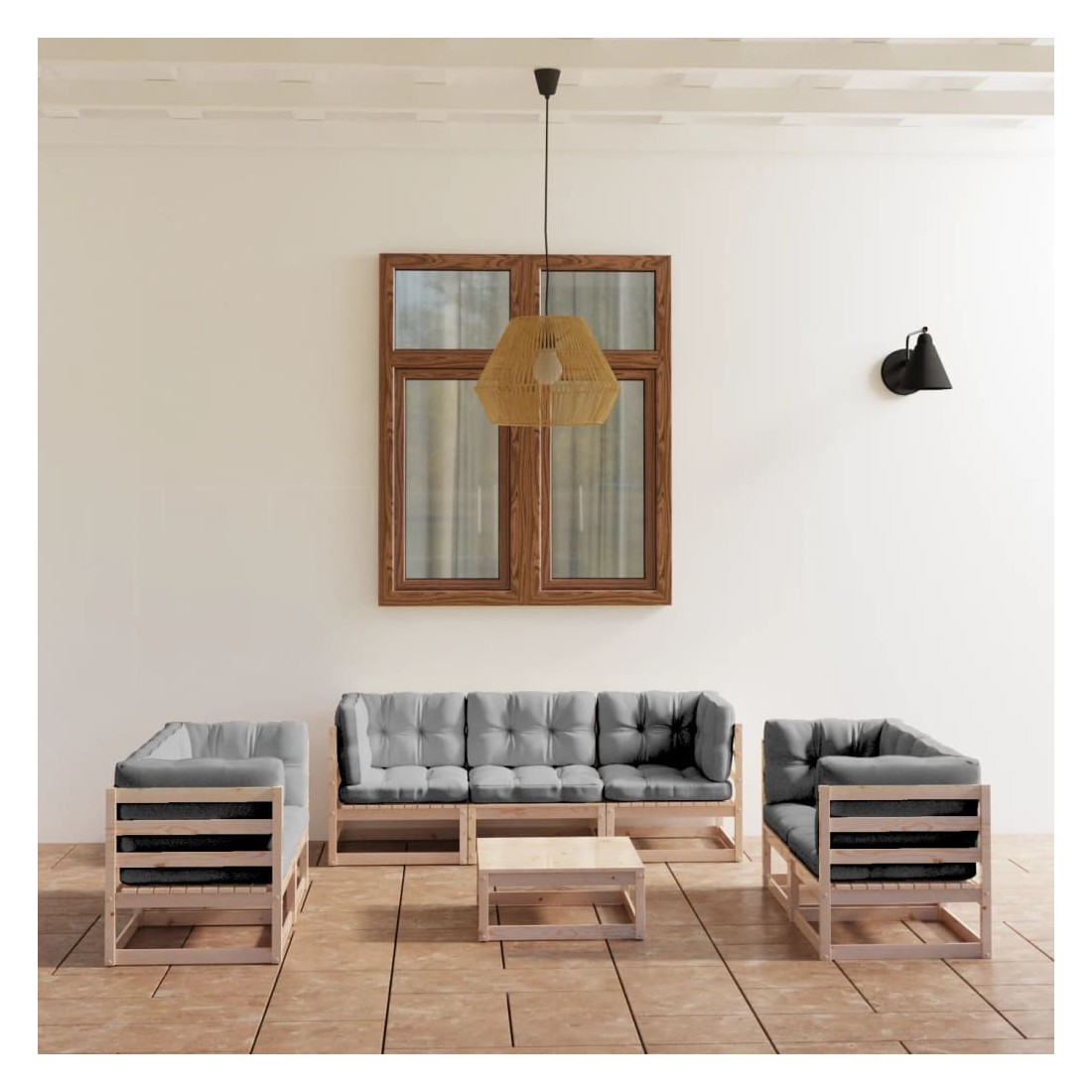 Ce salon de jardin est un excellent choix pour vous détendre et profiter du beau temps, faire une sieste ou discuter avec votre famille ou vos amis. L’ensemble de salon de jardin est fabriqué en bois de pin massif, ce qui le rend robuste et stable. Les coussins ajoutent un confort supplémentaire. Vous pouvez le combiner avec d’autres segments modulaires pour créer vos propres configurations de salon de jardin ! Remarque : afin de prolonger la durée de vie des meubles d'extérieur, nous vous recommandons de les protéger avec une housse imperméable.