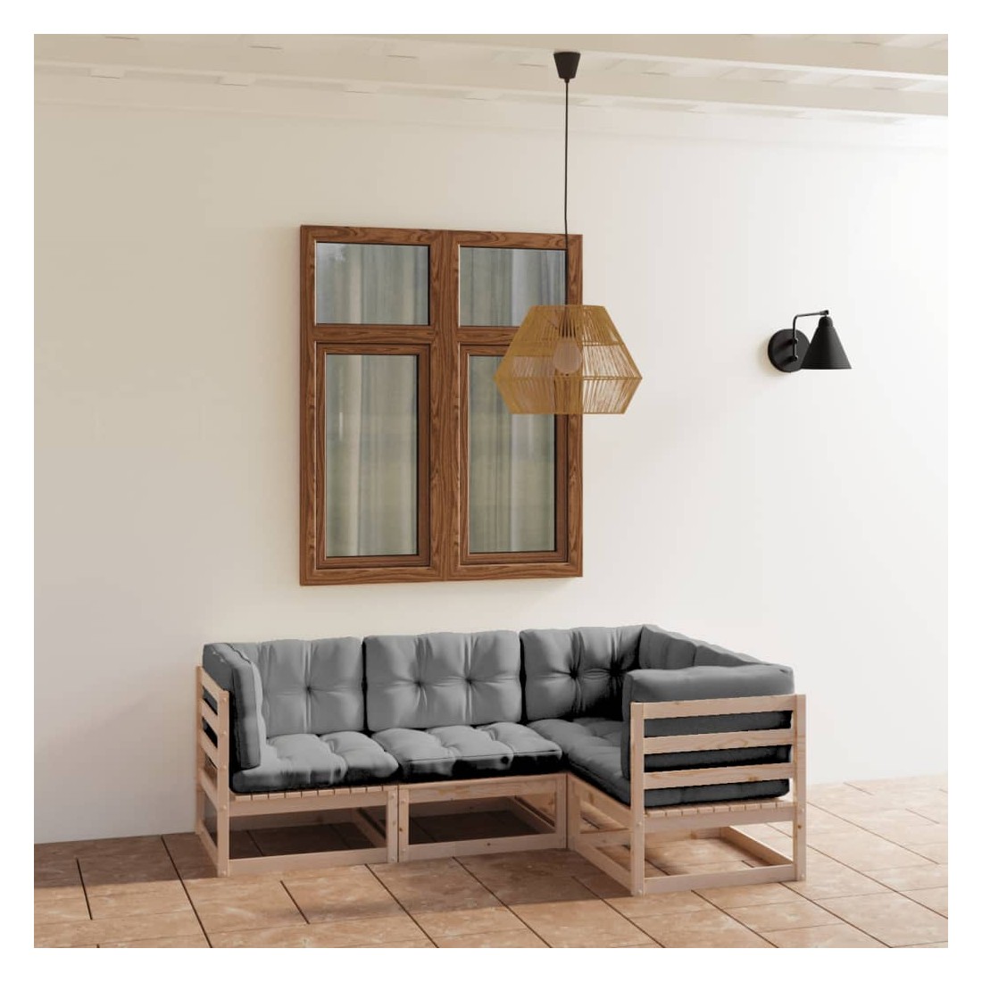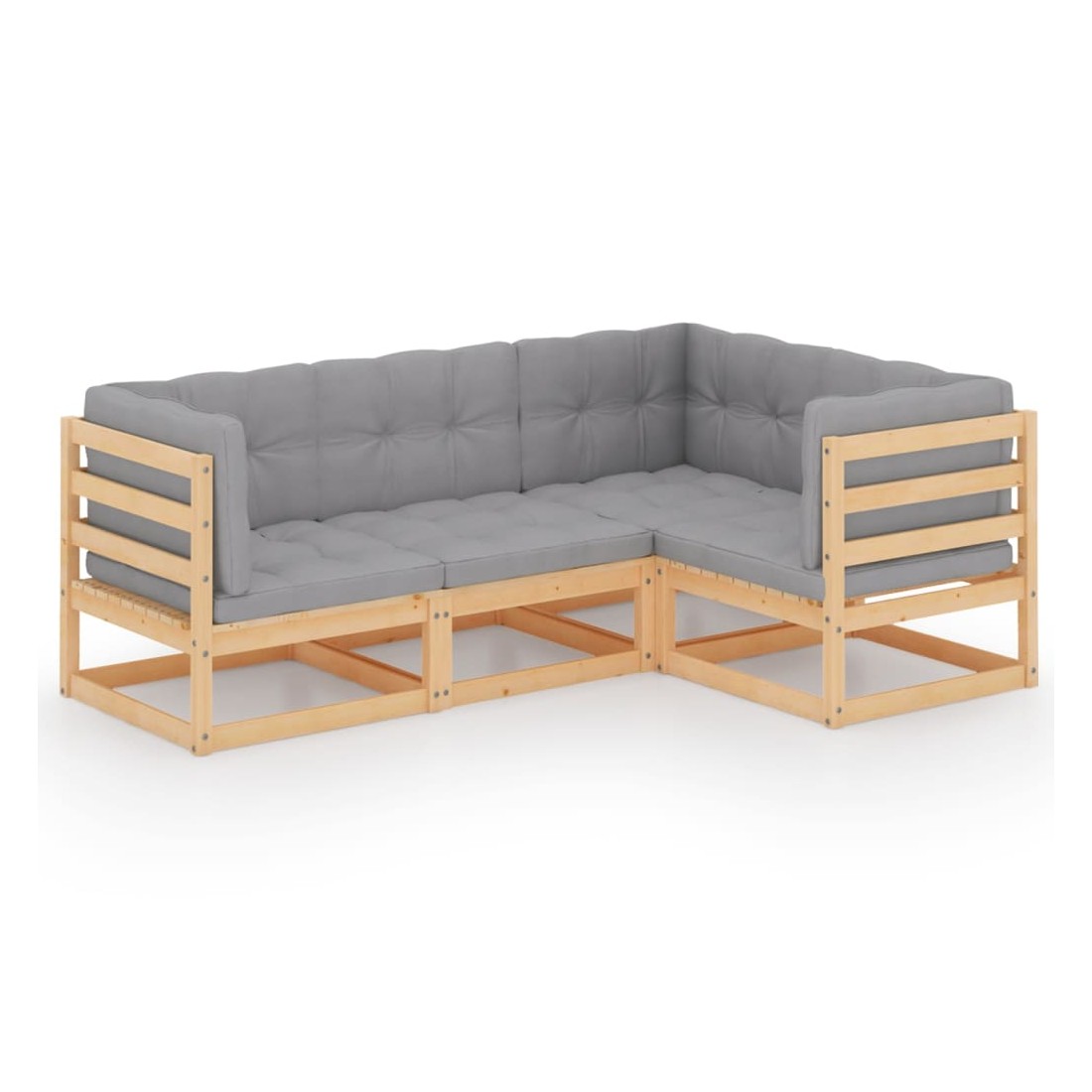 Ce salon de jardin est un excellent choix pour vous détendre et profiter du beau temps, faire une sieste ou discuter avec votre famille ou vos amis. L’ensemble de salon de jardin est fabriqué en bois de pin massif, ce qui le rend robuste et stable. Les coussins ajoutent un confort supplémentaire. Vous pouvez le combiner avec d’autres segments modulaires pour créer vos propres configurations de salon de jardin ! Remarque : afin de prolonger la durée de vie des meubles d'extérieur, nous vous recommandons de les protéger avec une housse imperméable.