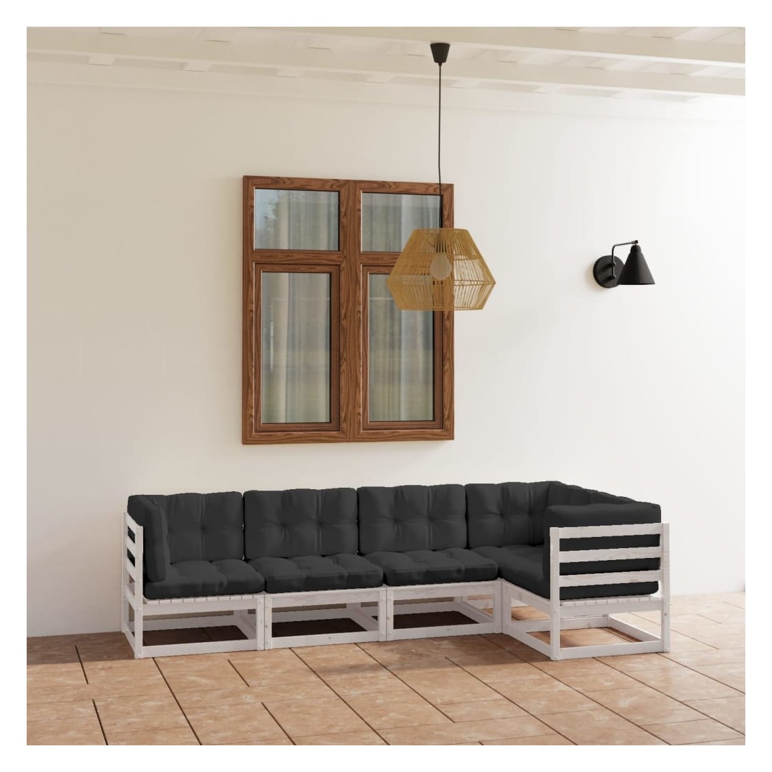 Salon de jardin 5 pcs avec coussins Bois de pin massif