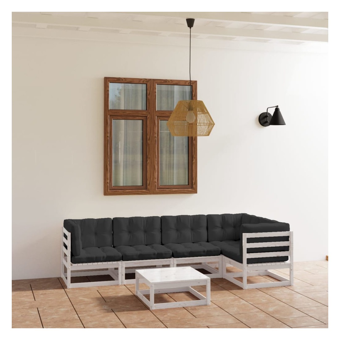 Salon de jardin 6 pcs avec coussins Bois de pin massif