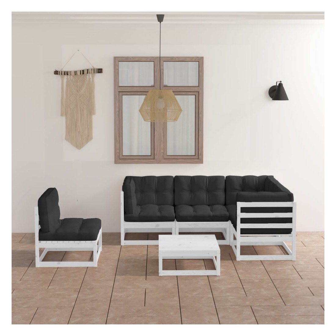 Ce salon de jardin est un excellent choix pour vous détendre et profiter du beau temps, faire une sieste ou discuter avec votre famille ou vos amis. L’ensemble de salon de jardin est fabriqué en bois de pin massif, ce qui le rend robuste et stable. Les coussins ajoutent un confort supplémentaire. Vous pouvez le combiner avec d’autres segments modulaires pour créer vos propres configurations de salon de jardin ! Remarque : afin de prolonger la durée de vie des meubles d'extérieur, nous vous recommandons de les protéger avec une housse imperméable.