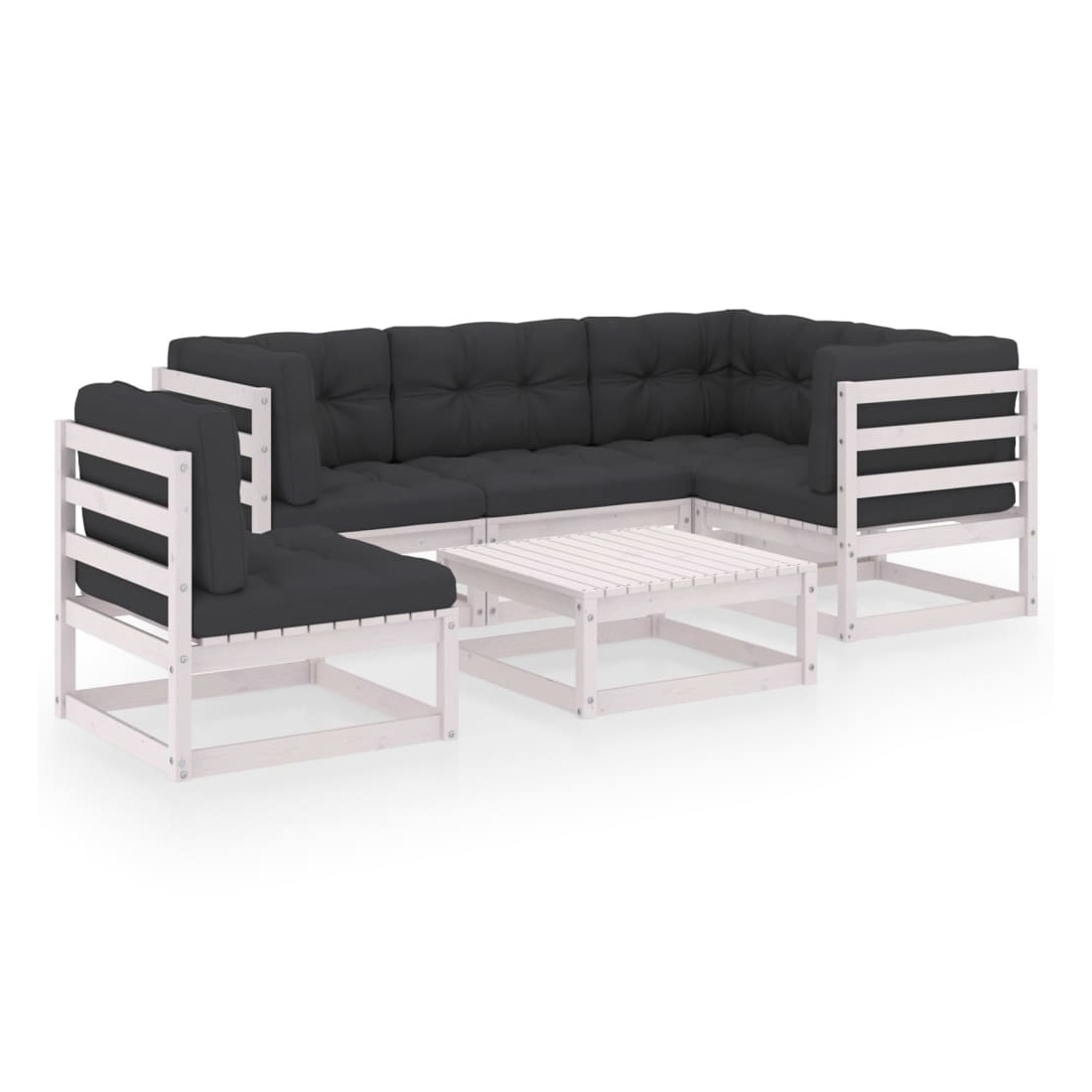 Salon de jardin 6 pcs avec coussins Bois de pin massif