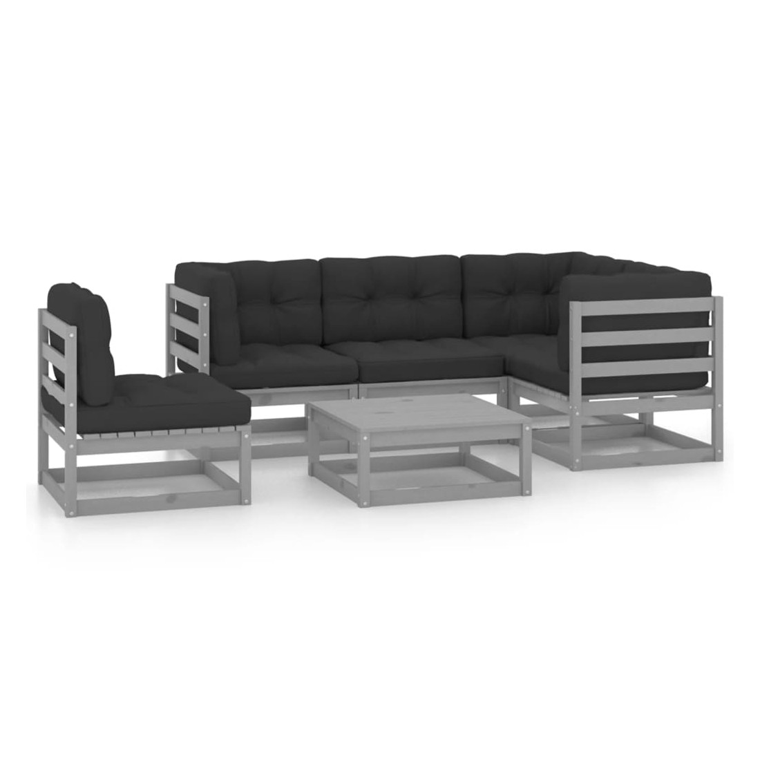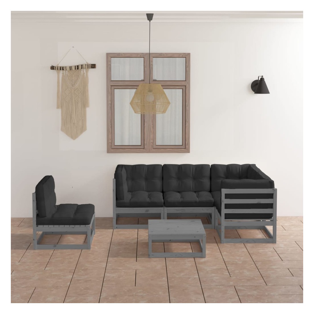 Salon de jardin 6 pcs avec coussins Bois de pin massif