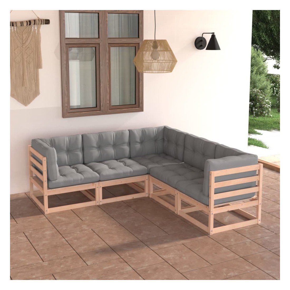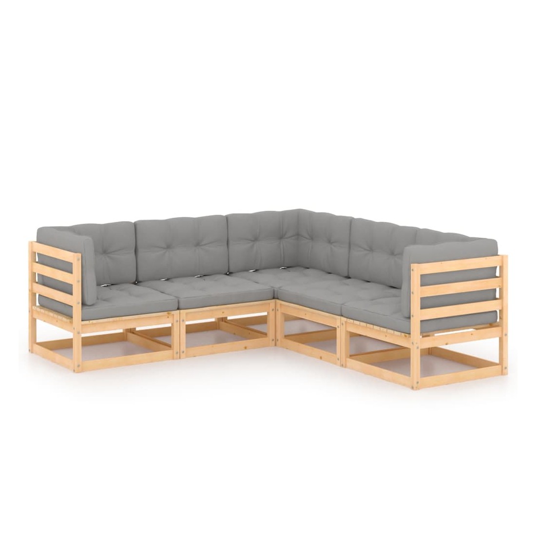 Salon de jardin 5 pcs avec coussins Bois de pin massif