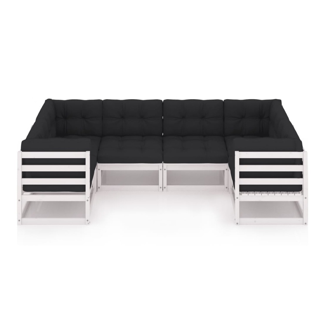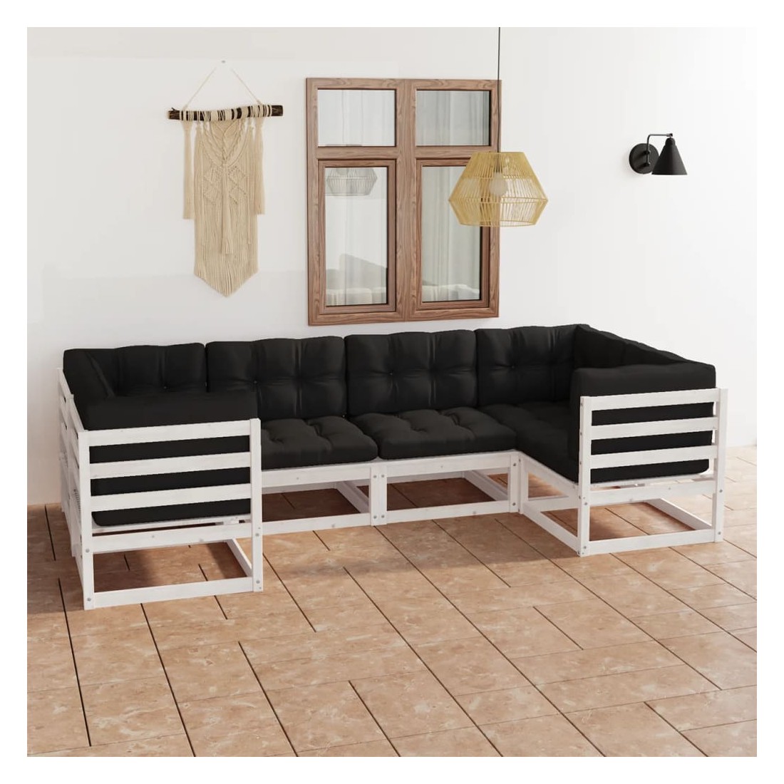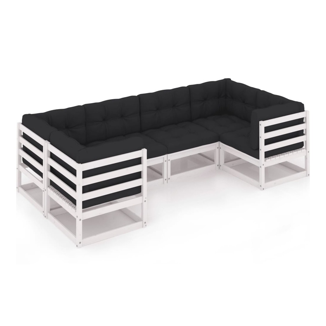 Salon de jardin avec coussins 6 pcs blanc bois de pin massif