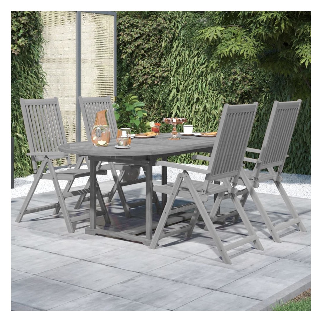 Profitez d'un bon repas en plein air avec votre famille et vos amis avec cet ensemble de salle à manger de jardin en bois ! Matériau de qualité supérieure : cet ensemble de salle à manger est fabriqué en bois d'acacia massif, un bois dur tropical, qui résiste aux intempéries et est durable pour des années d'utilisation. La surface à finition à l'huile est facile à nettoyer avec un chiffon humide. Table extensible : la table à manger est extensible, répondant à vos différents besoins. Chaise réglable et pliable : la chaise d'extérieur peut être réglée sur 5 positions, vous offrant un confort d'assise optimal. Ces chaises de salle à manger peuvent également être pliées pour économiser de l'espace lorsqu'elles ne sont pas utilisées. Remarque : Afin de prolonger la durée de vie de votre mo