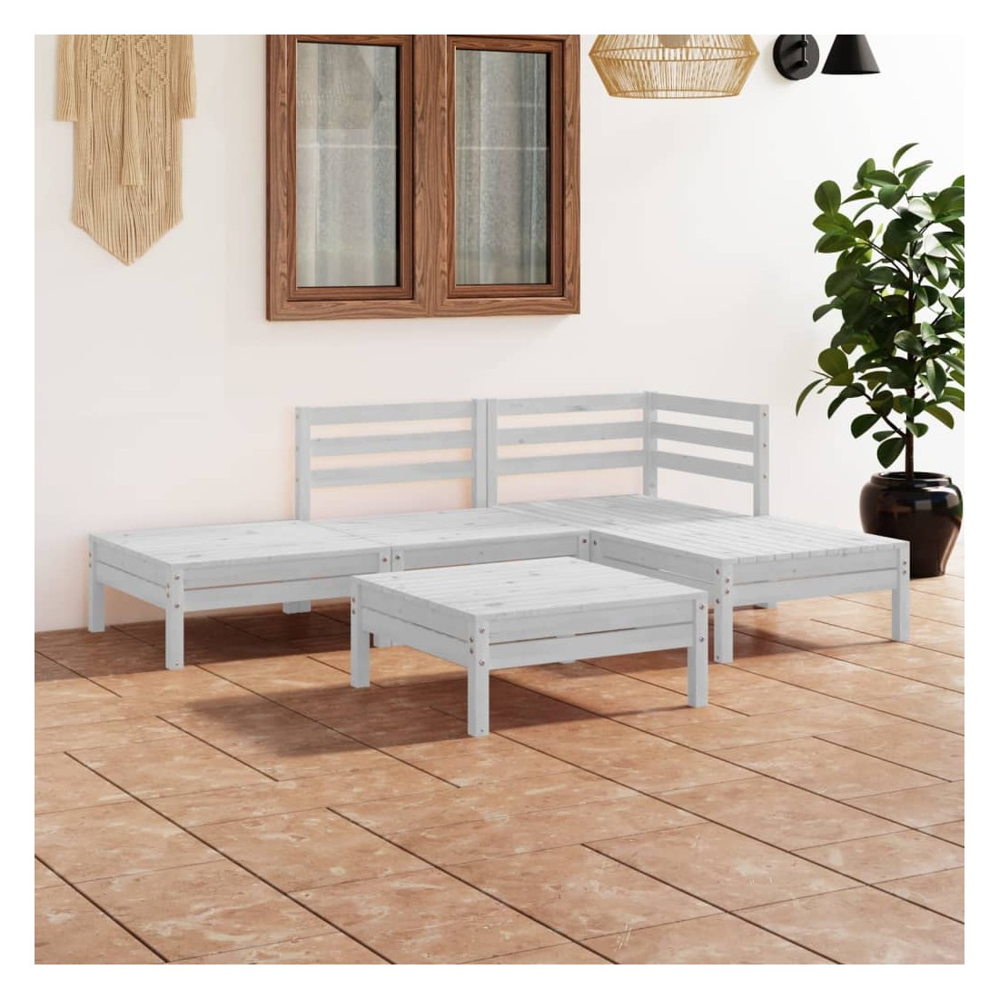 Salon de jardin 5 pcs Bois de pin massif Blanc