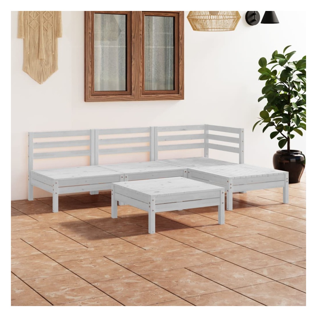 Salon de jardin 5 pcs Bois de pin massif Blanc