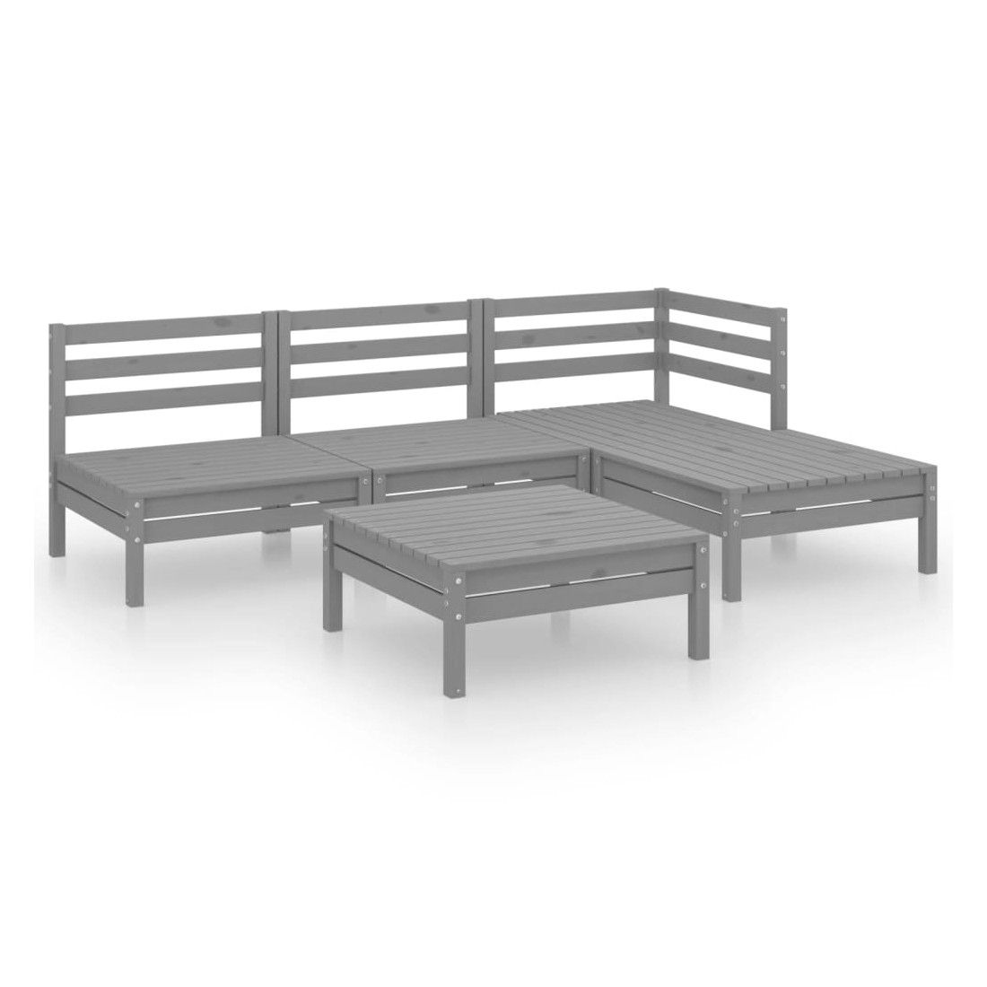 Salon de jardin 5 pcs Bois de pin massif Gris