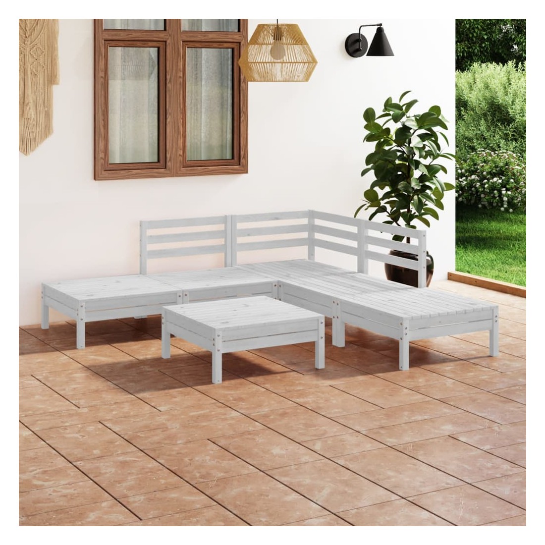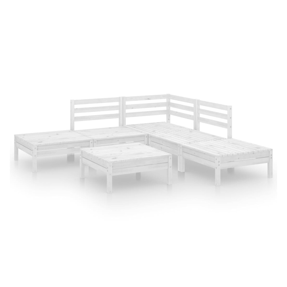 Salon de jardin 6 pcs Bois de pin massif Blanc