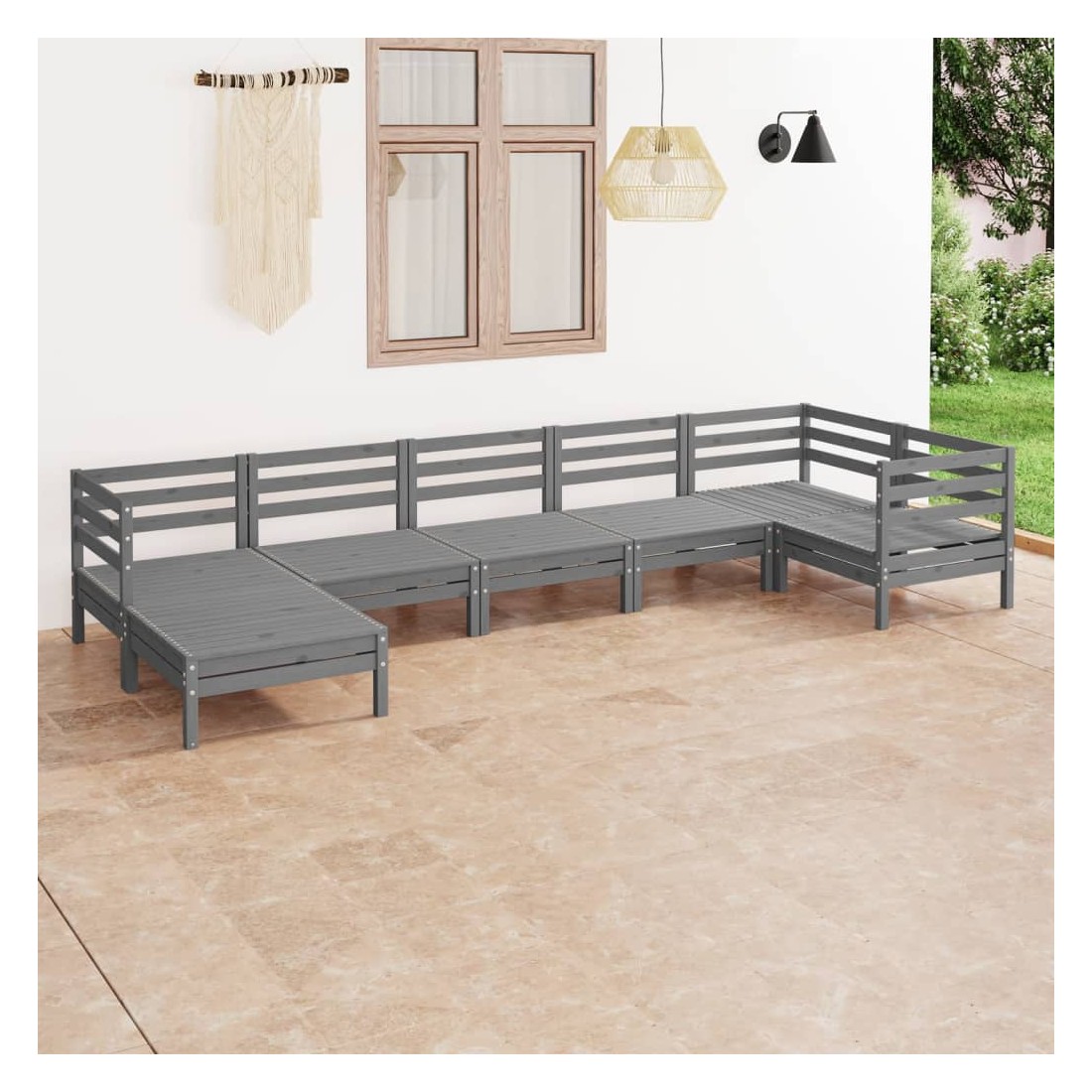 Salon de jardin 7 pcs Bois de pin massif Gris