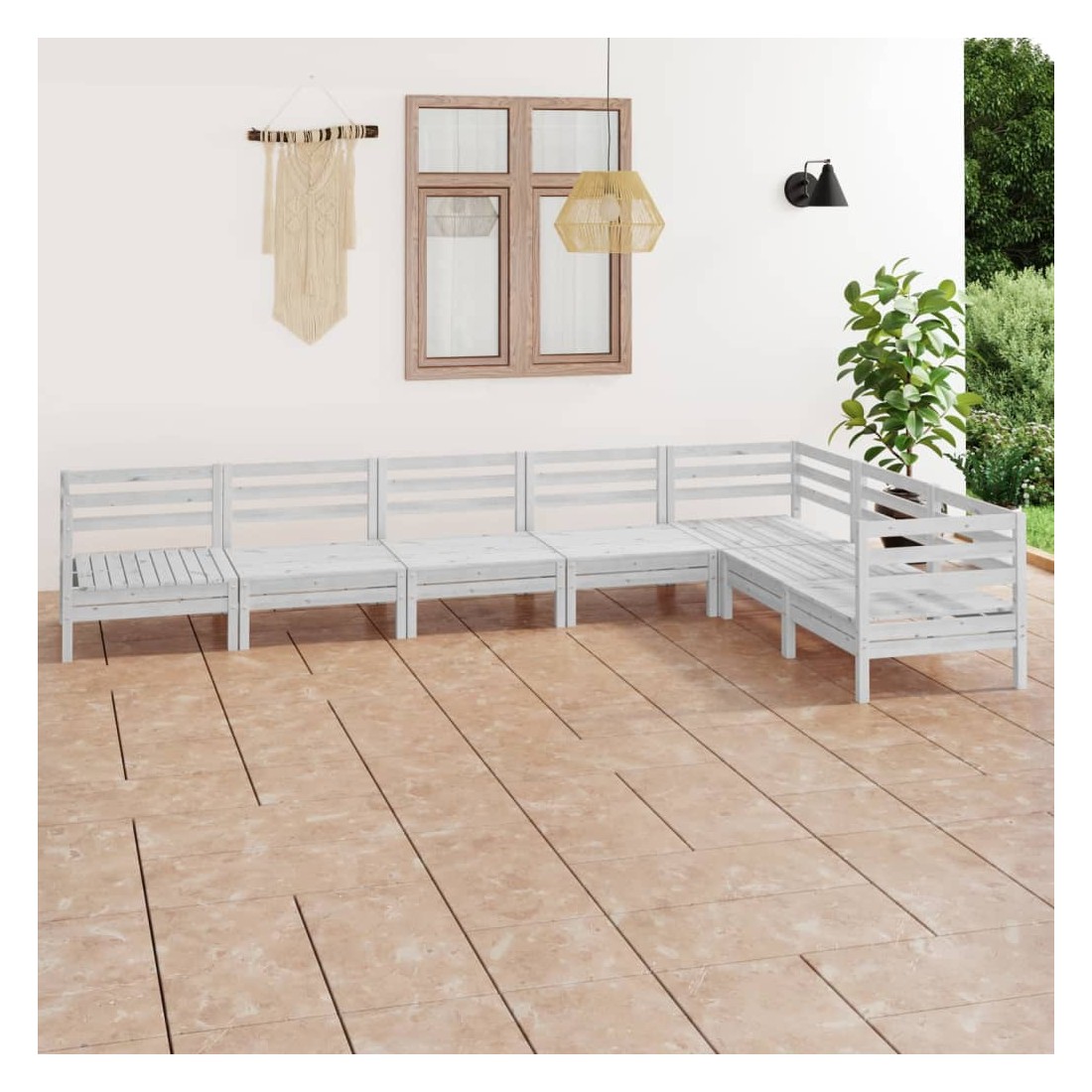 Salon de jardin 7 pcs Bois de pin massif Blanc