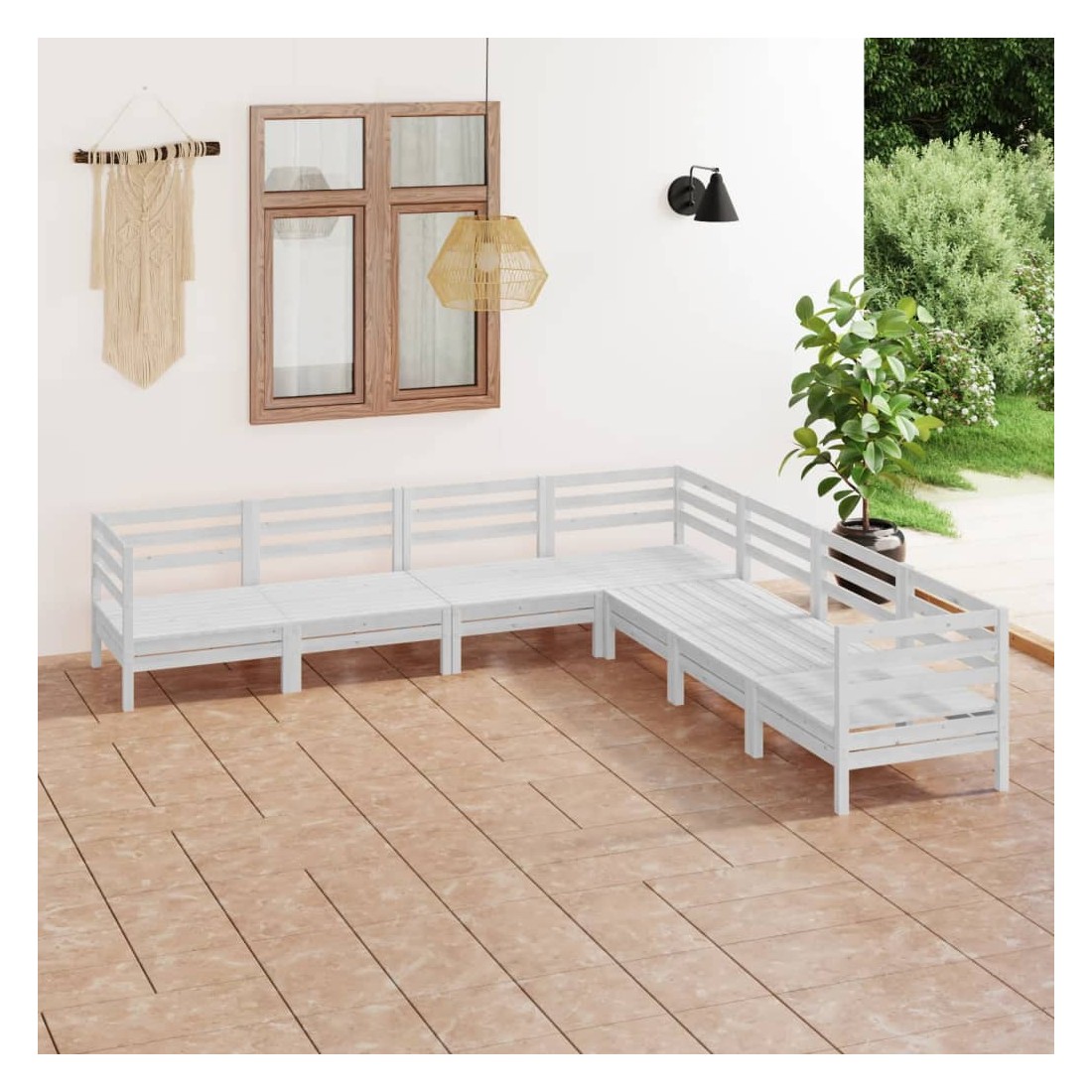 Salon de jardin 7 pcs Bois de pin massif Blanc