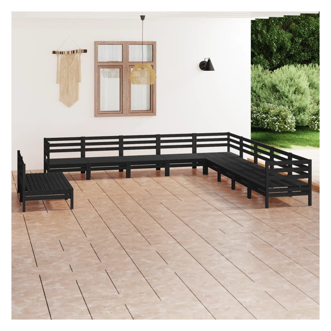 Salon de jardin 11 pcs Bois de pin massif Noir