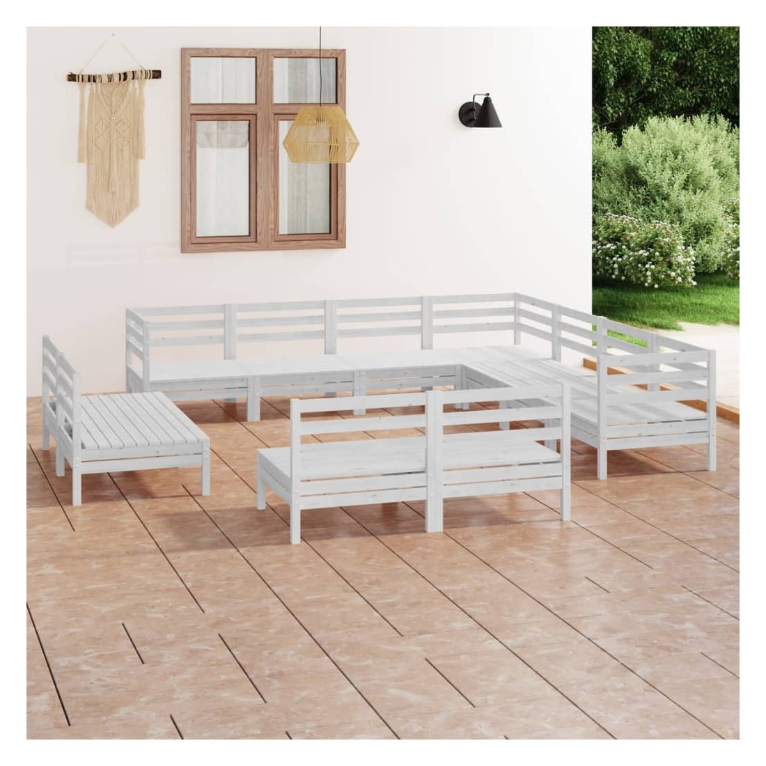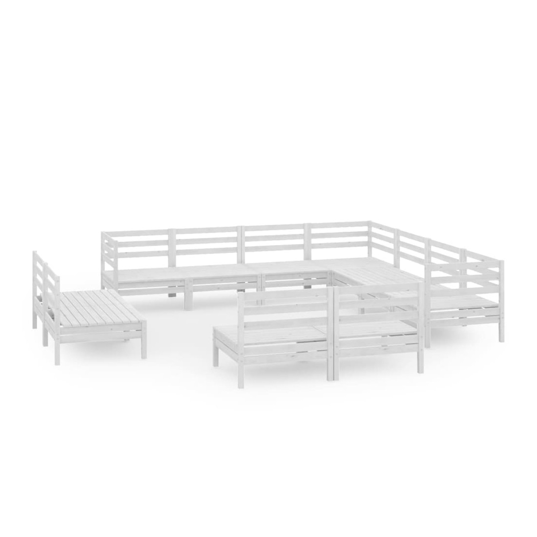 Salon de jardin 11 pcs Bois de pin massif Blanc