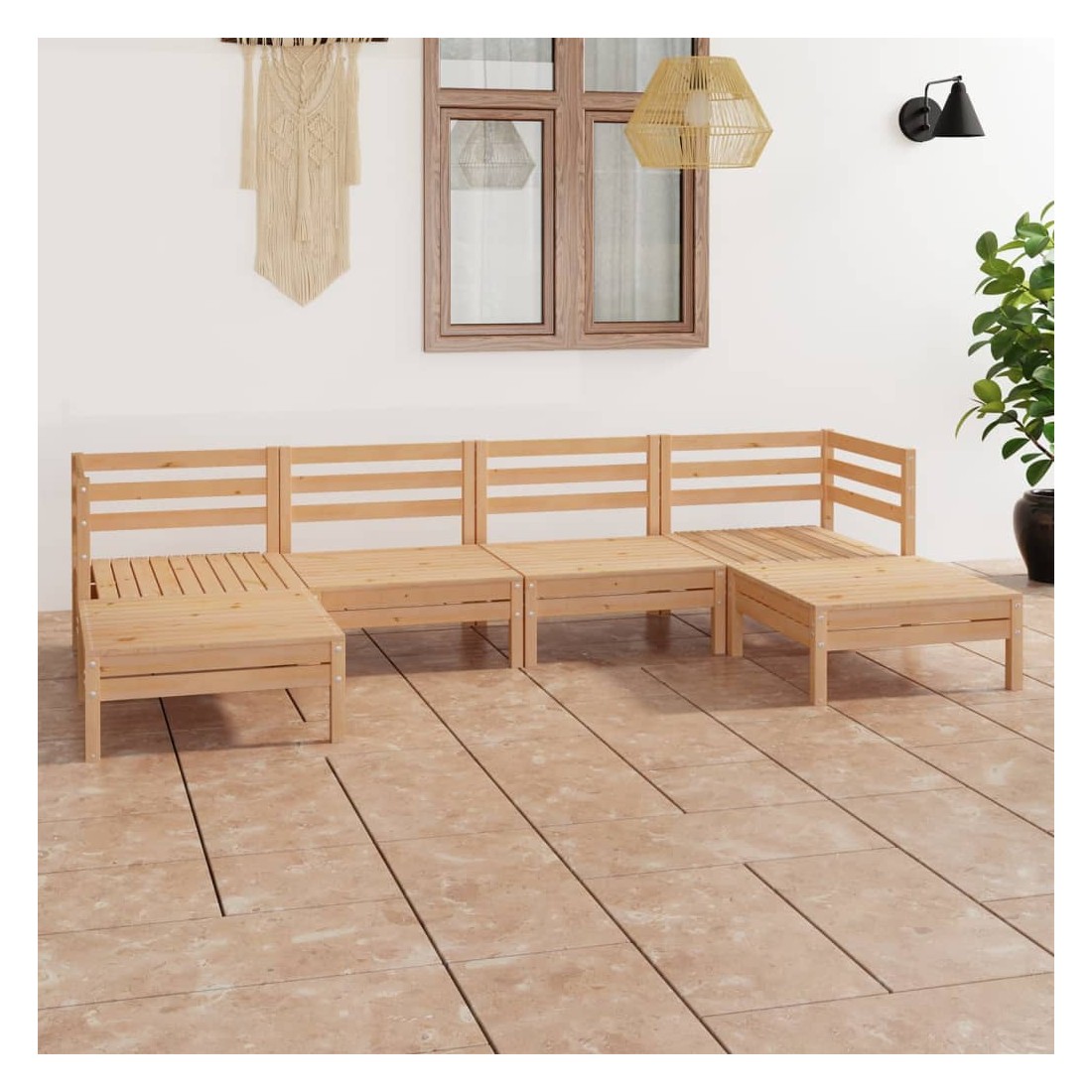 Cet ensemble de salon de jardin en bois est un choix idéal pour vous détendre, profiter du beau temps, faire une sieste ou discuter en famille ou entre amis. Avec son design intemporel de palette, l'ensemble de canapés en bois ajoute une touche de charme rustique à votre terrasse, jardin ou salon. Fabriqué en bois de pin massif, cet ensemble de salon de patio est très durable et résistant aux intempéries. Cet ensemble de meubles a une construction solide et nécessite peu d'entretien. De plus, la conception modulaire permet également de placer l'ensemble dans n'importe quel arrangement selon vos goûts. Remarque : afin de prolonger la durée de vie des meubles d'extérieur, nous vous recommandons de les protéger avec une housse imperméable.