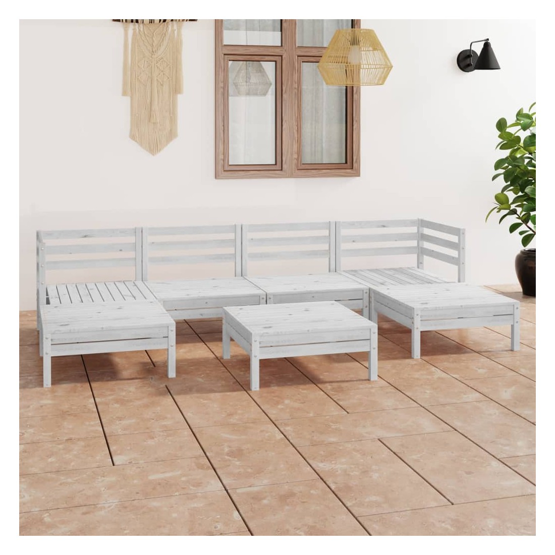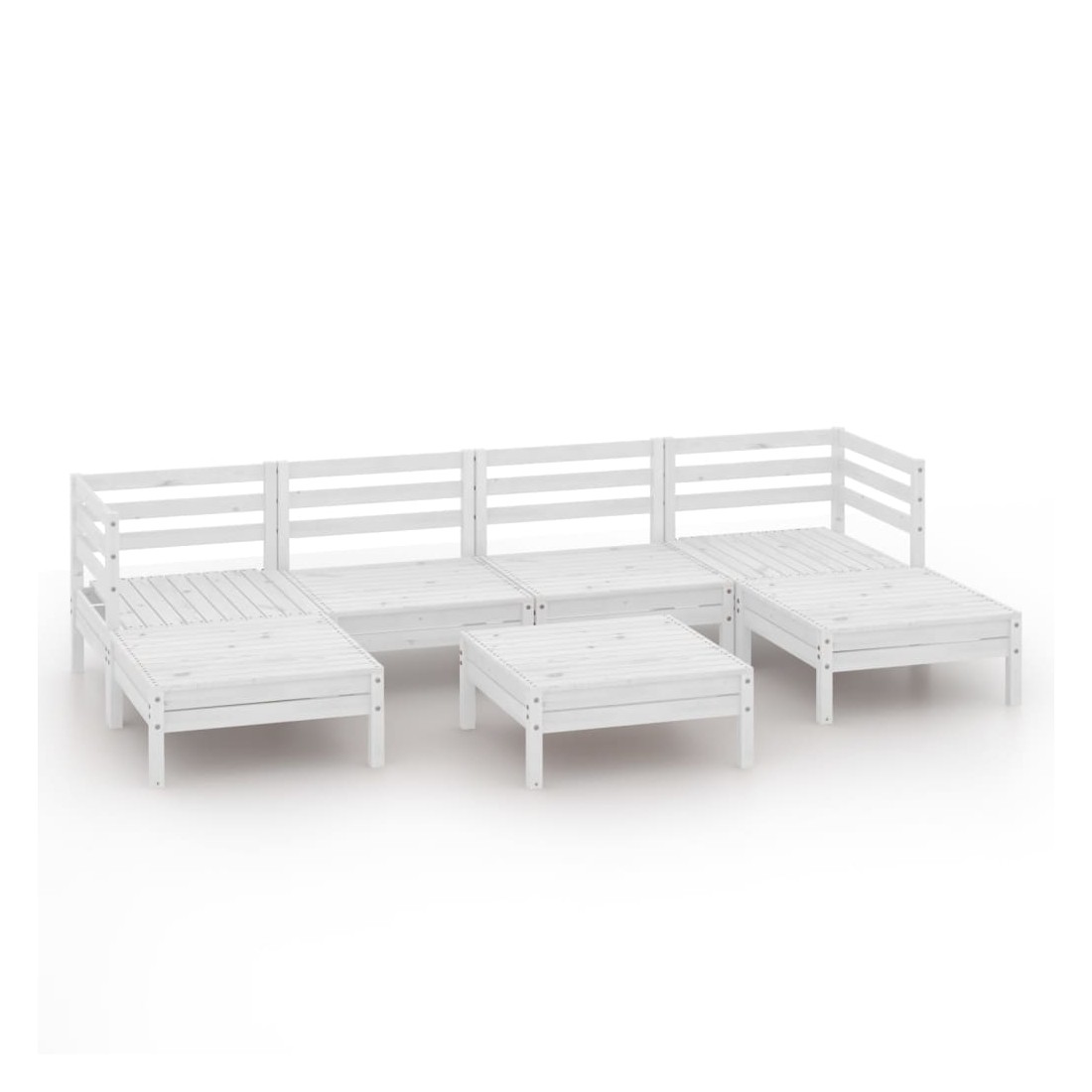 Salon de jardin 7 pcs Blanc Bois de pin massif