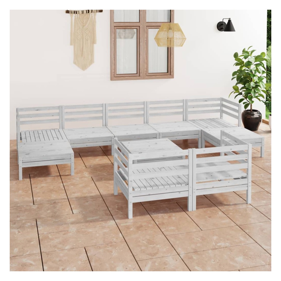 Salon de jardin 10 pcs Blanc Bois de pin massif