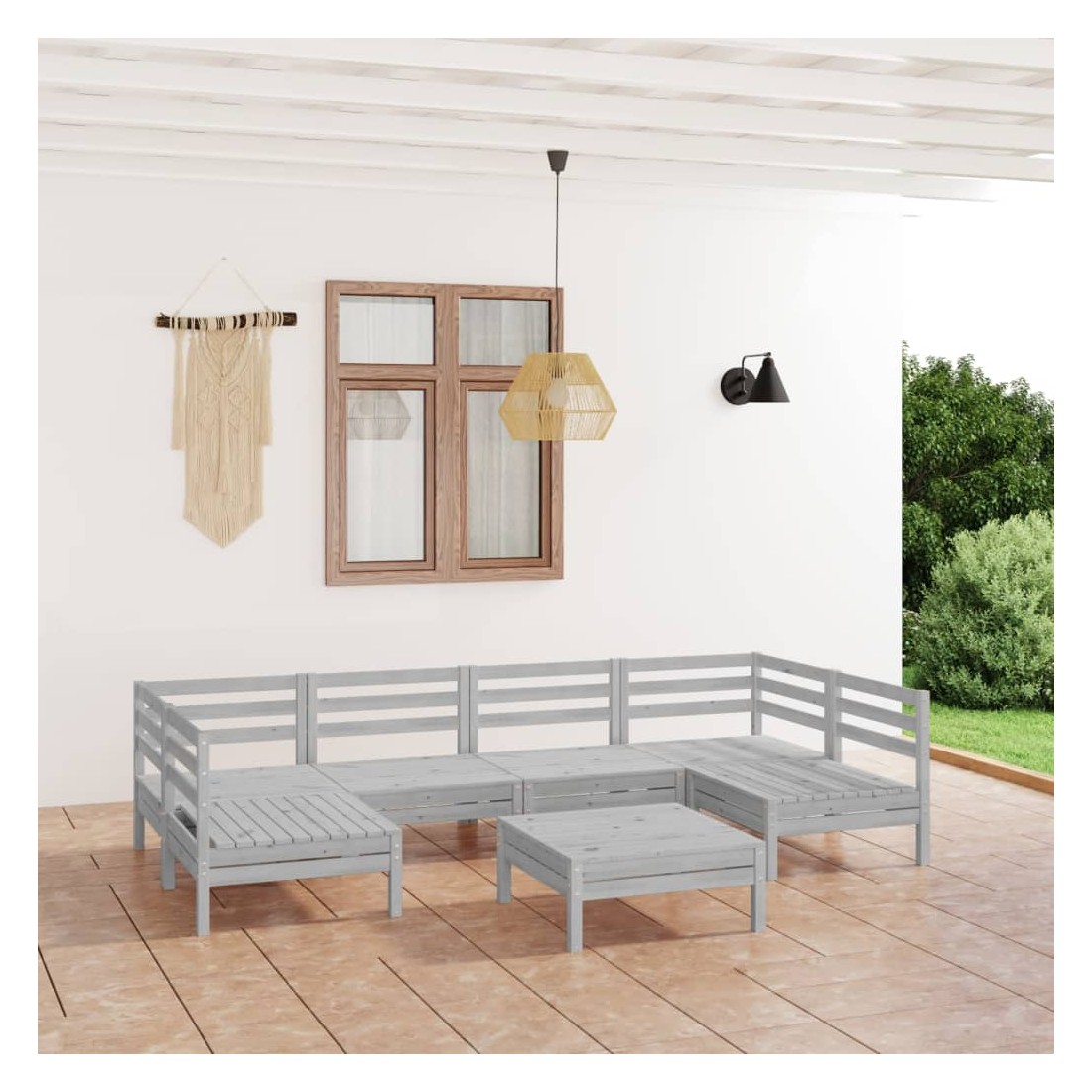 Cet ensemble de salon de jardin en bois est un choix idéal pour vous détendre, profiter du beau temps, faire une sieste ou discuter en famille ou entre amis. Avec son design intemporel de palette, l'ensemble de canapés en bois ajoute une touche de charme rustique à votre terrasse, jardin ou salon. Fabriqué en bois de pin massif, cet ensemble de salon de patio est très durable et résistant aux intempéries. Cet ensemble de meubles a une construction solide et nécessite peu d'entretien. De plus, la conception modulaire permet également de placer l'ensemble dans n'importe quel arrangement selon vos goûts. Remarque : afin de prolonger la durée de vie des meubles d'extérieur, nous vous recommandons de les protéger avec une housse imperméable.