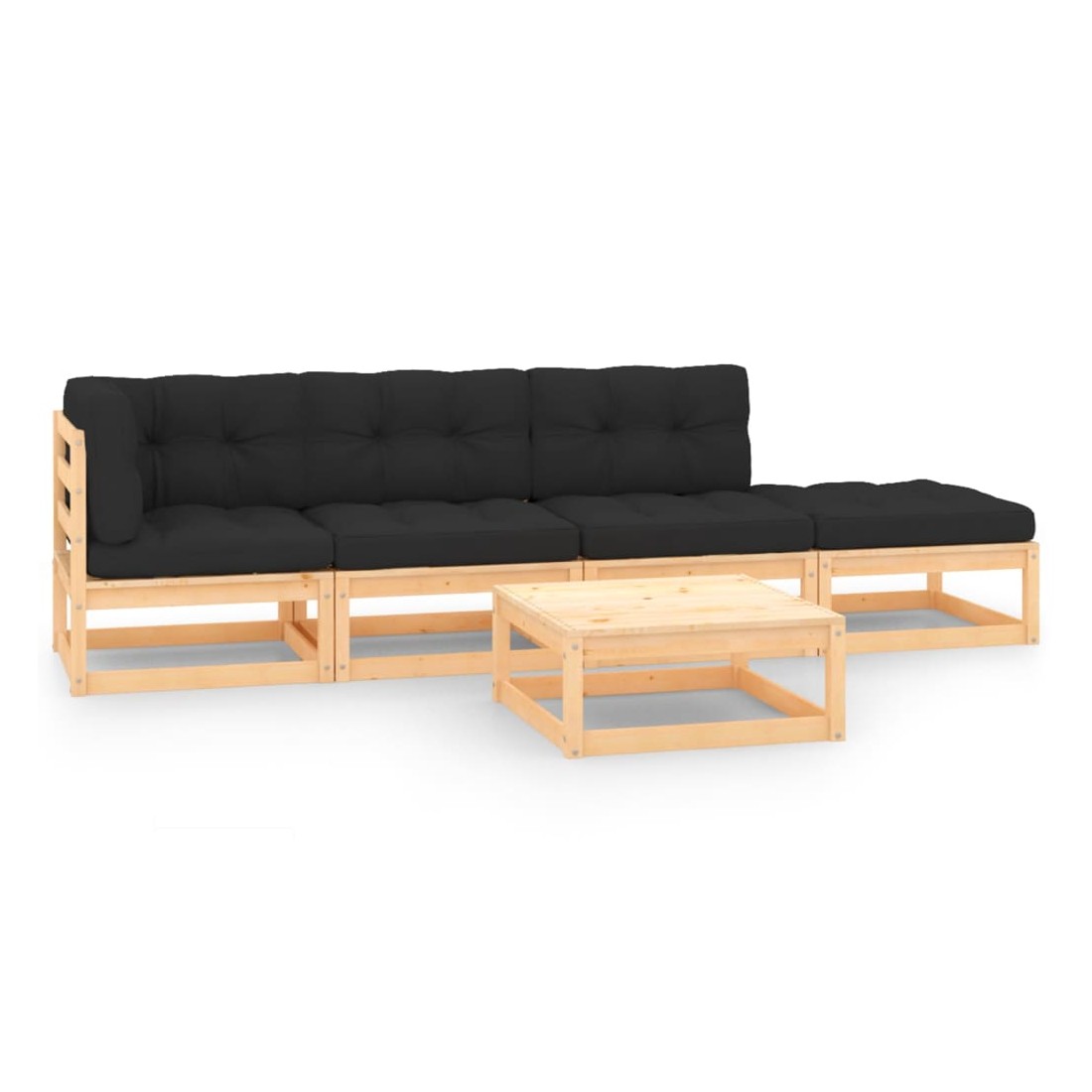 Salon de jardin 5 pcs avec coussins Bois de pin massif