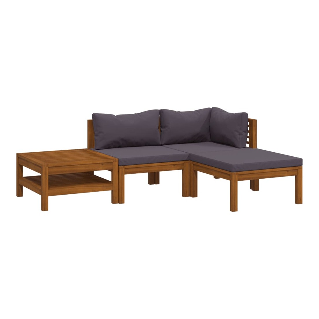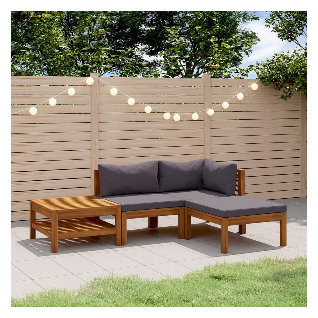Ce mobilier de jardin en bois est une combinaison parfaite de style et de fonctionnalité. Avec cela dans votre jardin, vous pouvez passer du temps relaxant et apaisant avec votre famille et vos amis. Doté d'un cadre en bois d'acacia massif, l'ensemble de canapé est solide, robuste et durable; et sa finition à l'huile rend l'ensemble de canapé adapté à une utilisation en extérieur. Les coussins amovibles sont bien rembourrés, afin d'offrir un grand confort d'assise. Une table basse au design à lattes unique est également incluse. De plus, grâce à sa conception modulaire, toutes les pièces peuvent être arrangées et personnalisées selon vos besoins. Cet ensemble de sièges d'extérieur sera sûrement le point de mire de votre jardin ou patio. Remarque : afin de prolonger la durée de vie des meubles d'extérieur, nous vous recommandons de les protéger avec une housse imperméable.