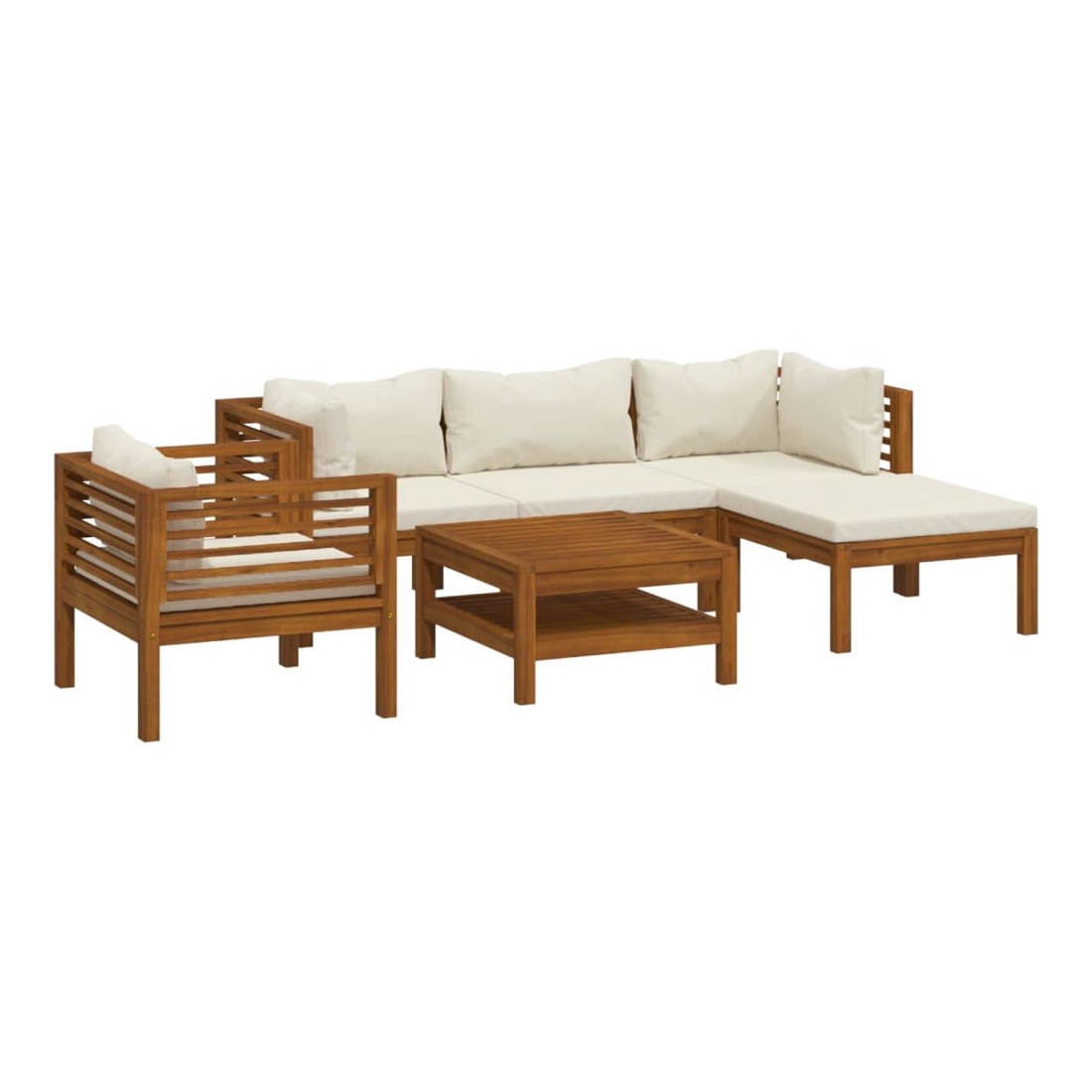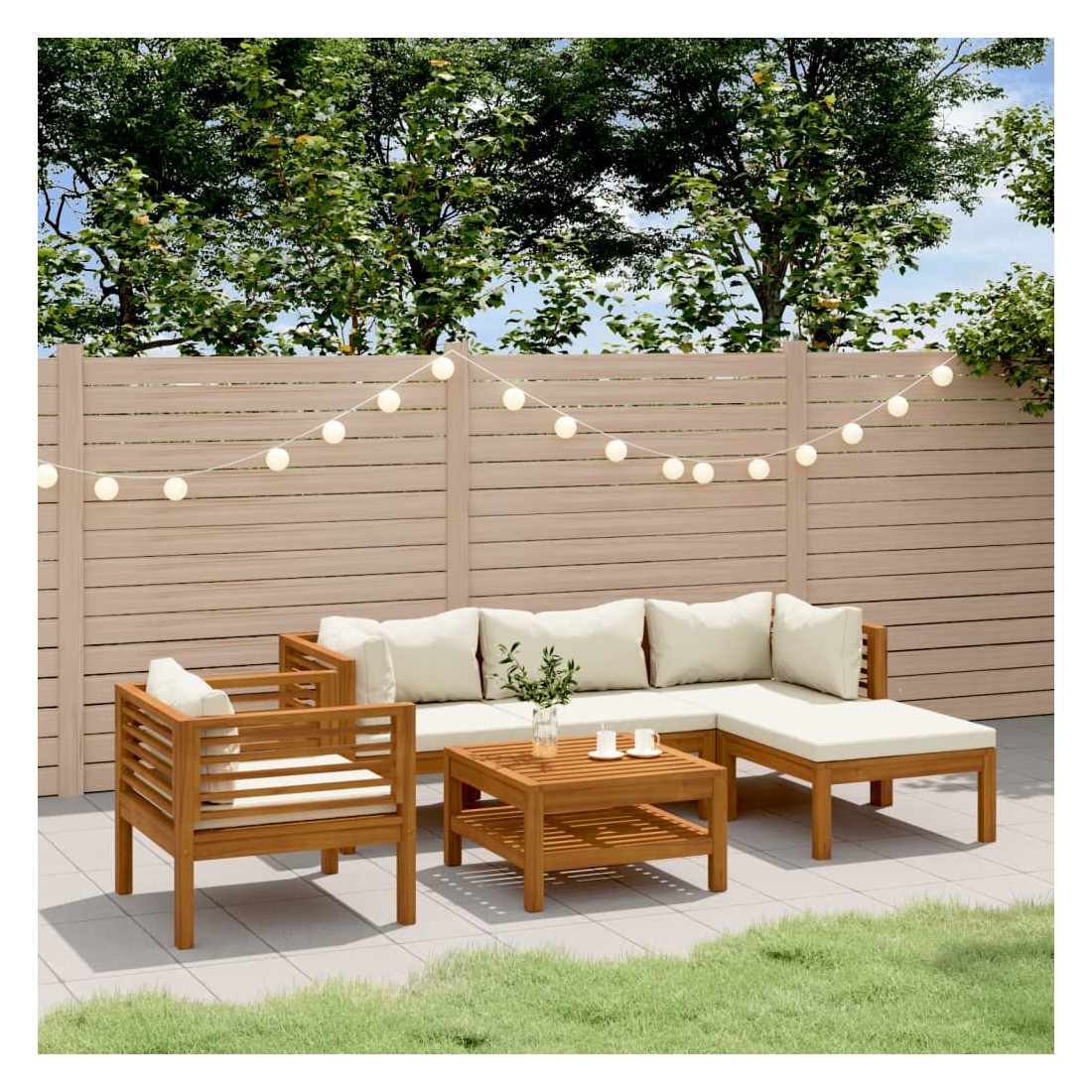 Salon de jardin 6 pcs avec coussin crème Bois d'acacia solide