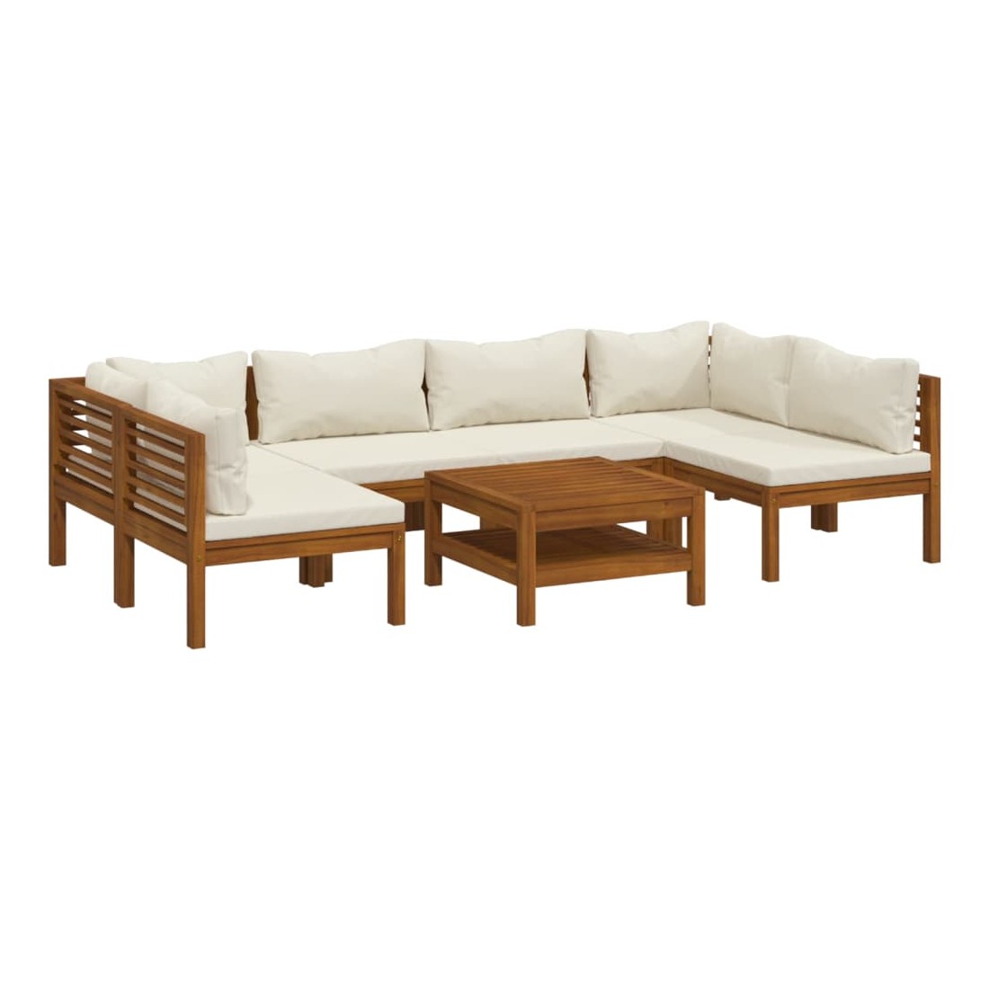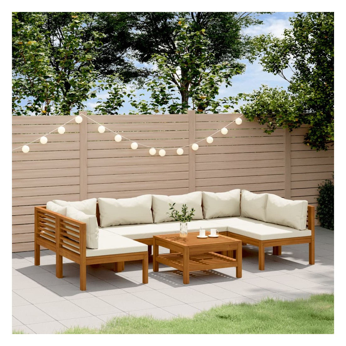 Salon de jardin 7 pcs avec coussin crème Bois d'acacia solide